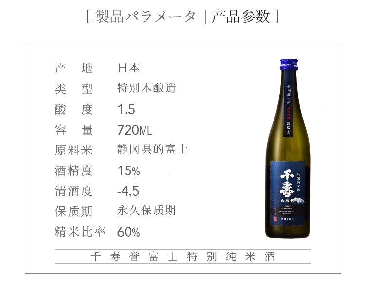 百寿、千寿、万寿———长寿之人必不可少之意,是拜访长者的首~选。清酒是日本料理的蕞佳搭配。在日本,毛豆和天妇罗等几样小菜就可让清酒迷们喝上半个晚上。天妇罗是广受欢迎的日式油炸,原料可以是蔬菜或海鲜,吃时蘸调料。就像喝中国白酒时少不了油炸或水煮五香花生米一样,天妇罗带着一股油香,于酒的辛辣间起缓口的作用。清酒可以一直喝到吃主食即寿司时,甚至可边吃寿司边喝酒,在日本也有人喜欢喝清酒时只吃寿司。不同的寿司口味迥然不同,完全胜任为清酒单独配餐清酒一直是日本人最常喝的饮料。在大型的宴会上,结婚典礼中,在酒吧间或寻常百姓的餐桌上,人们都可以看到清酒。清酒已成为日本的国粹。贺茂鹤清酒在日本有酒王之称,多次在日本评酒会中获得大奖,为日本高档酒,主要供应日本G宴、大财团、高级管理人员等成功人士饮用。馥郁的香味,特有的浓醇酒味,上口极佳。