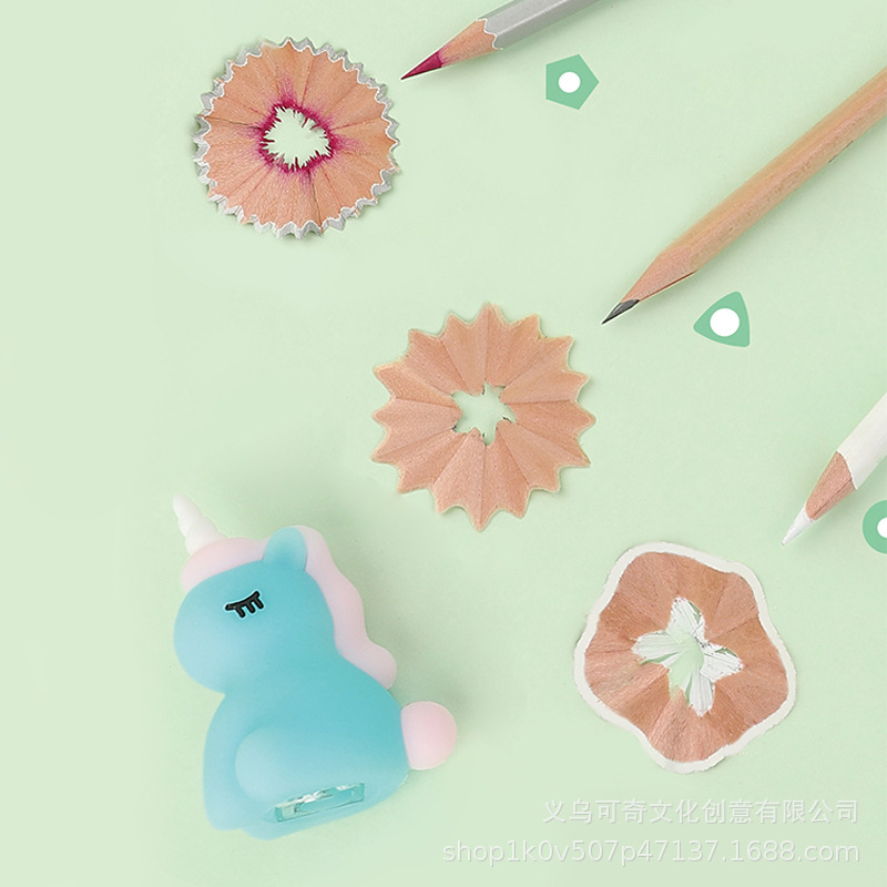 可奇家独角兽造型卷笔刀简易可爱软胶卡通创意学生文具手动削笔器 English | 投诉