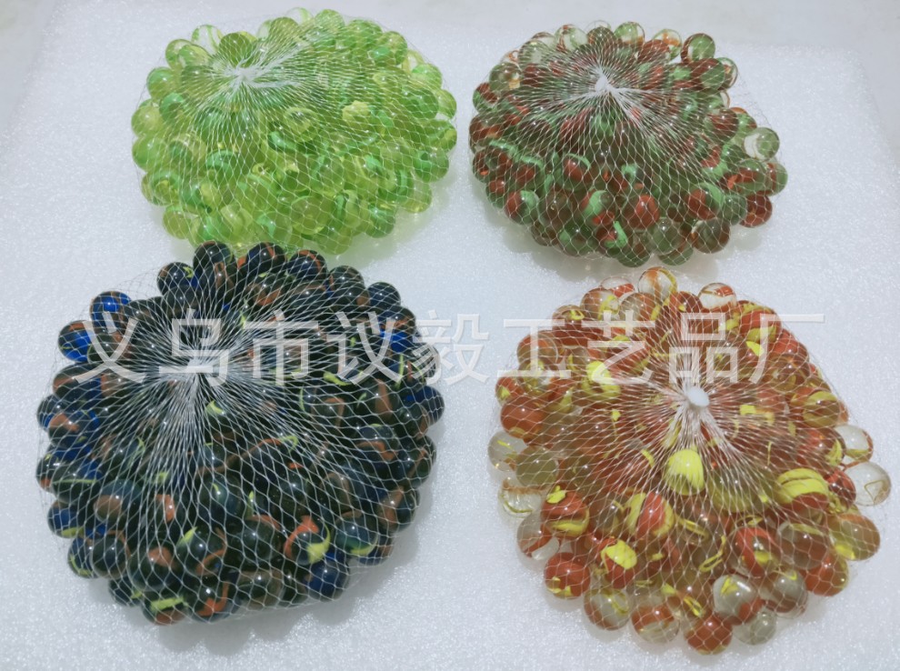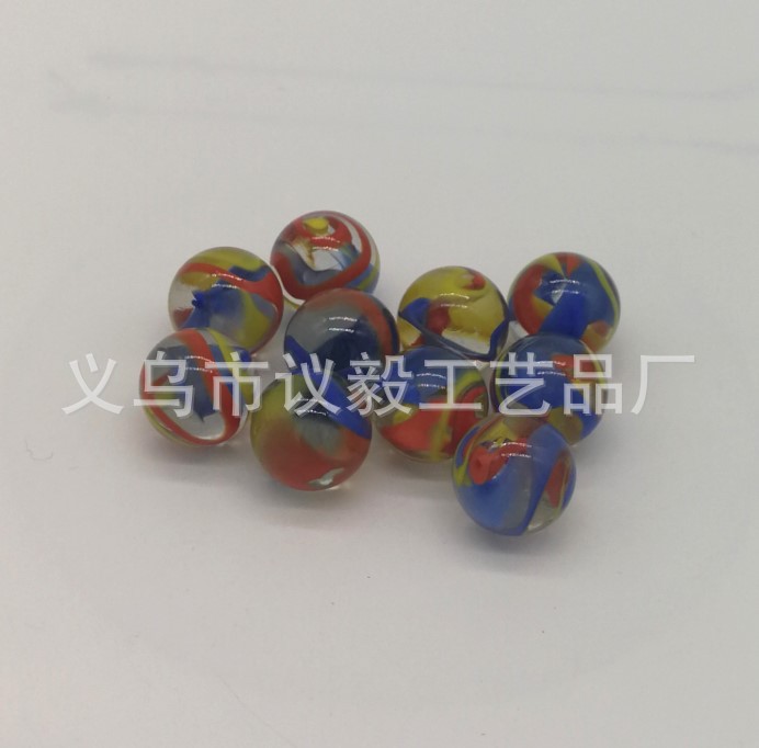 90粒16mm透明绕花玻璃球 红黄绕花古兰外花弹珠 彩色玻璃装饰弹珠