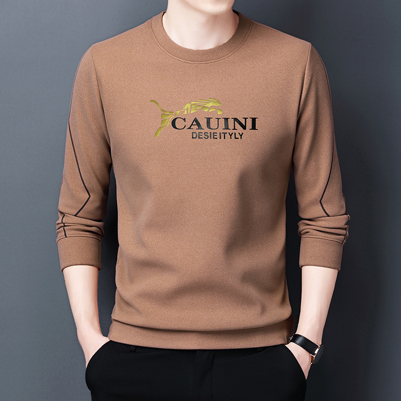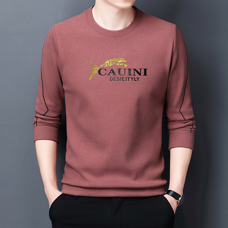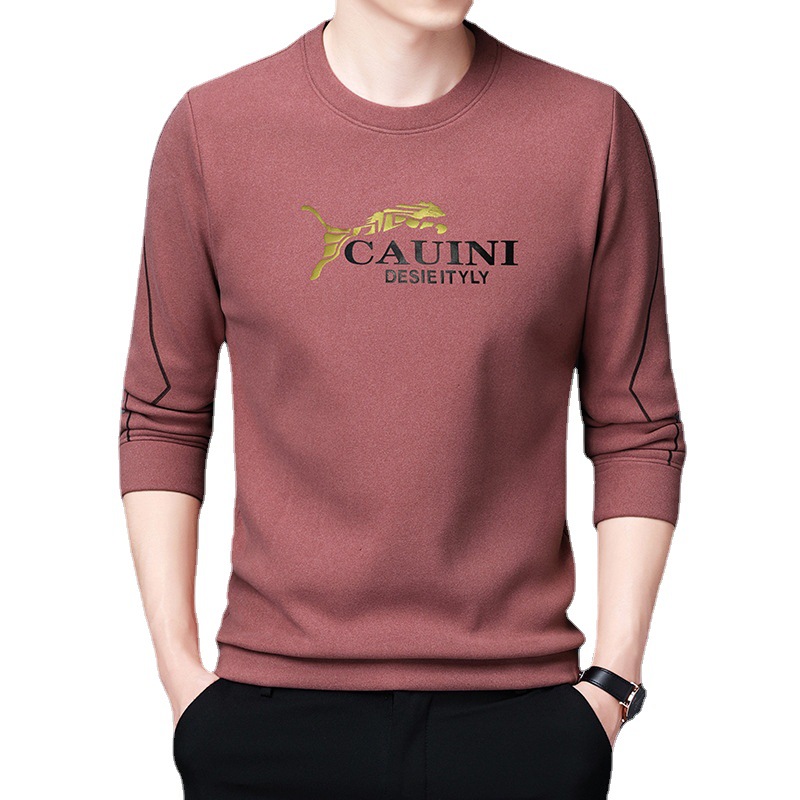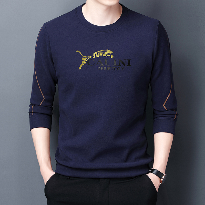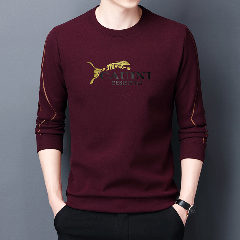 秋季新款长袖T恤男2022韩版宽松休闲圆领多色金豹印花男士打底衫 English | 投诉