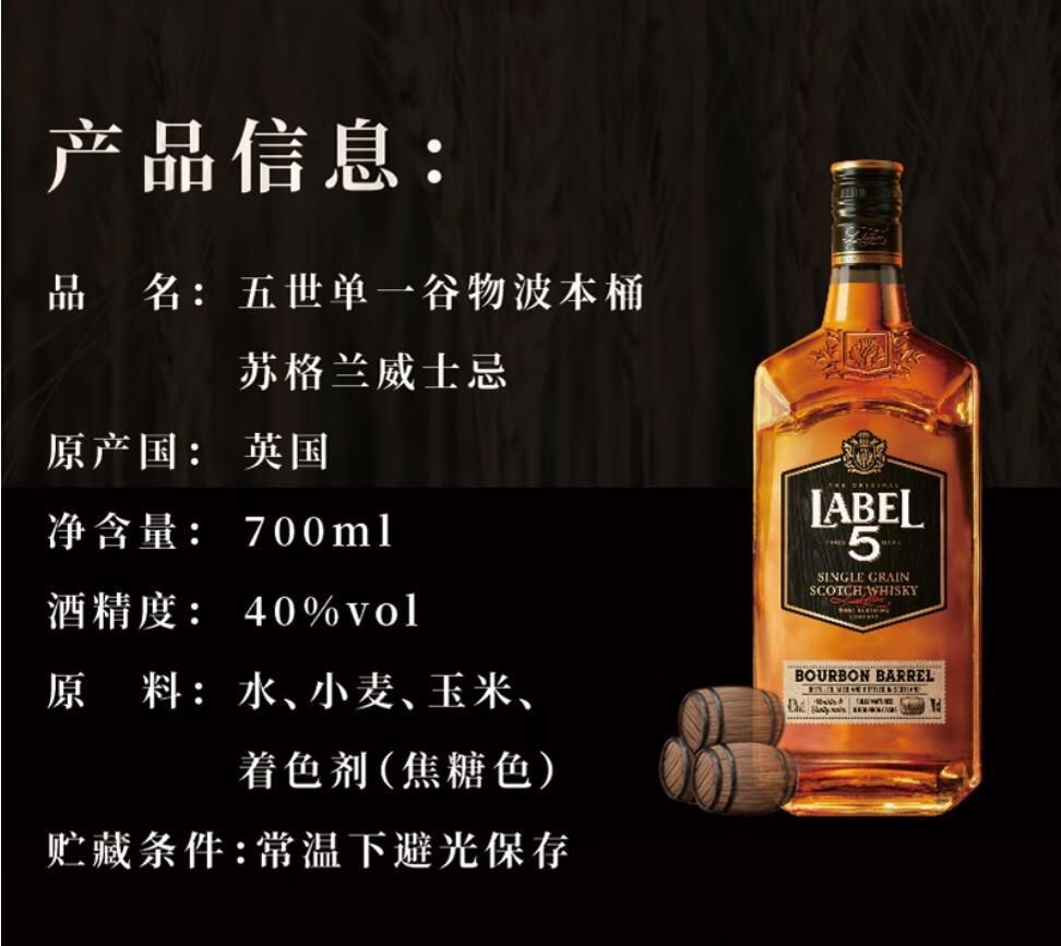 英国五世单一谷物波本桶苏格兰威士忌700ml 投诉