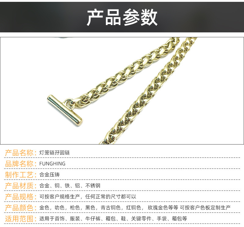 灯笼链包包链条箱包五金配件浅金色BSK链金属孖圆链包包配件直供 投诉