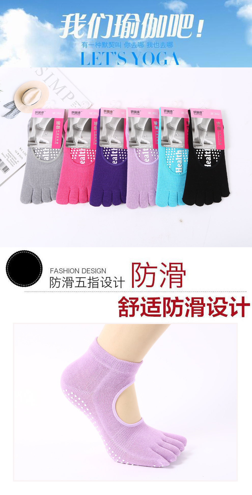 产品名称:义恺针织出品 瑜伽五趾防滑袜 2022新款分指点胶防滑舒适瑜伽袜女