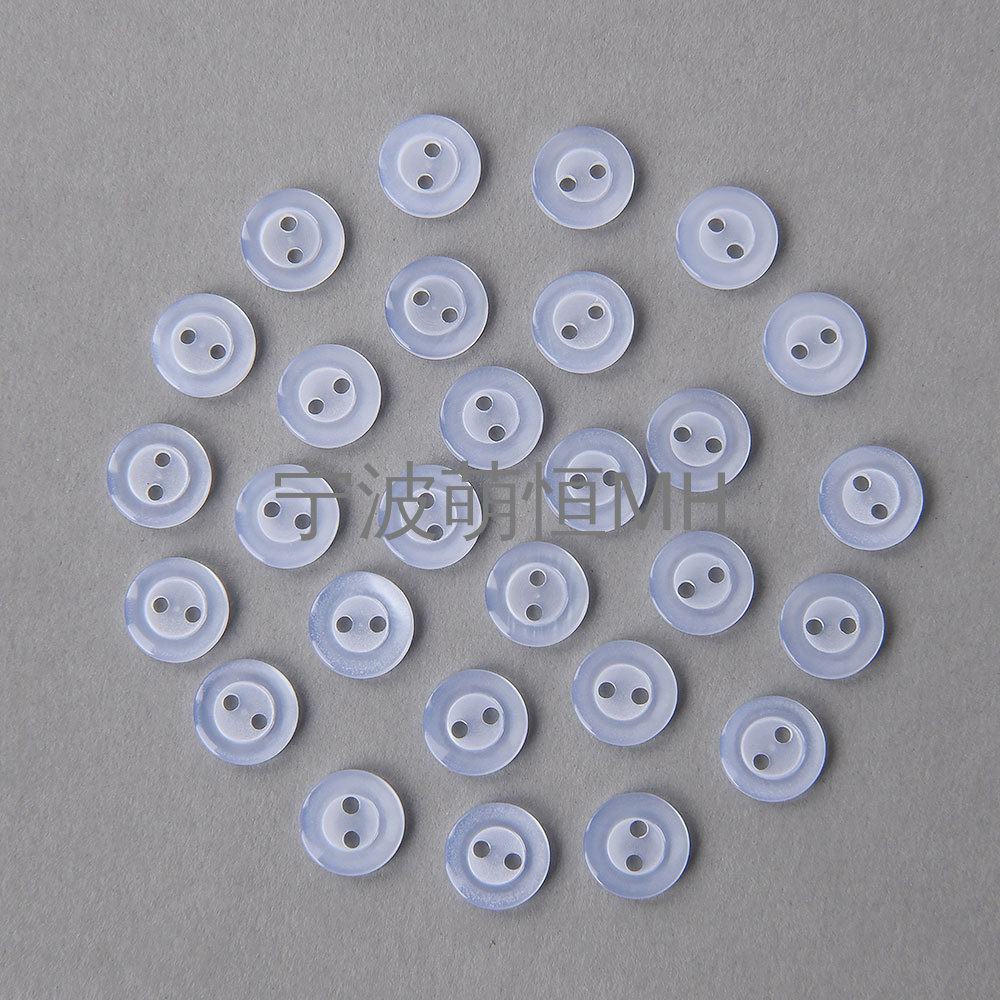 MH钮扣产品品类丰富,MH衬衫扣常规材质主要有树脂衬衫扣,锌合金衬衫扣,贝壳扣,珍珠扣,MH的树脂衬衫扣,14L-24L, 主要采用优质的树脂材质,有2眼、4眼、暗眼等类型,