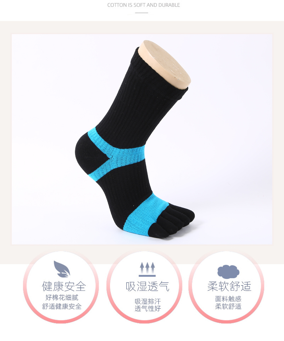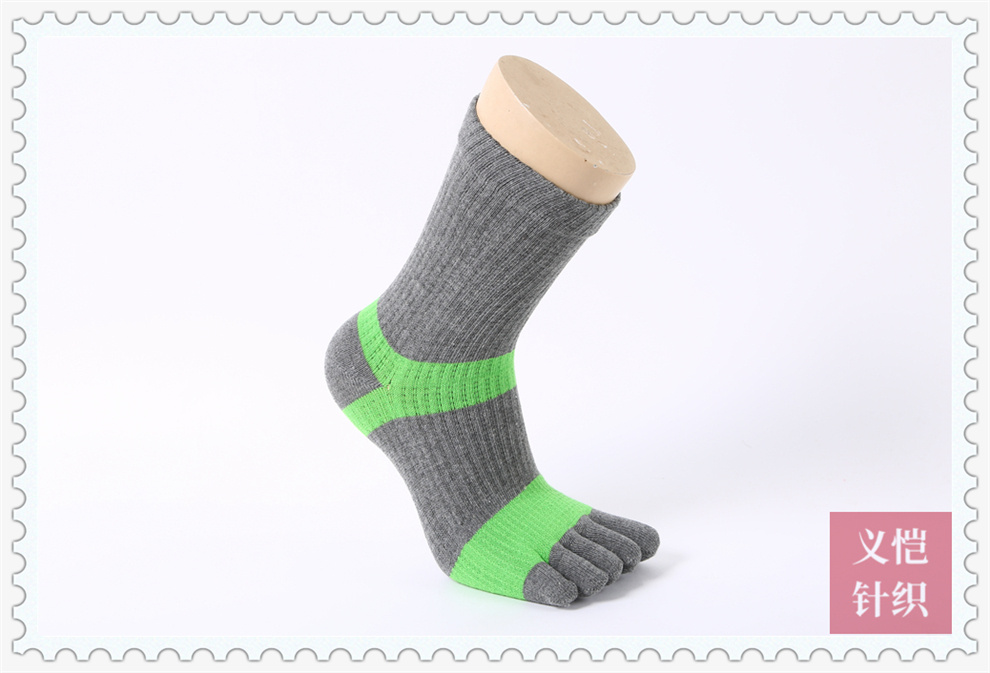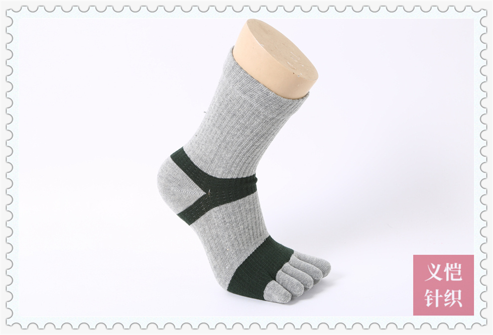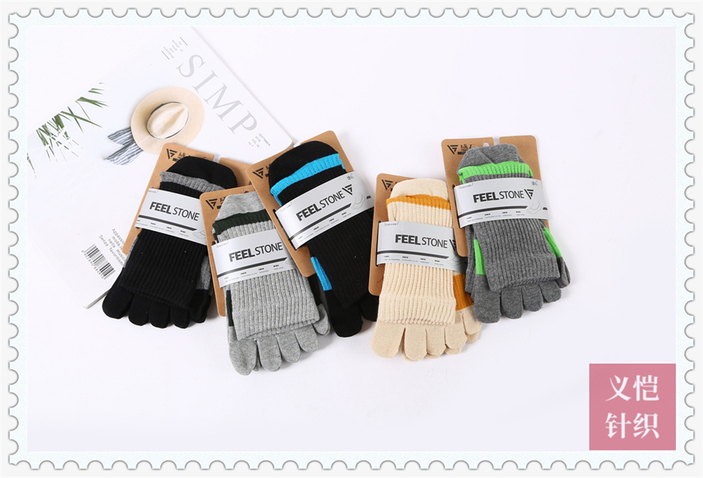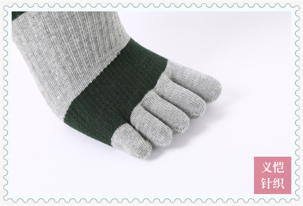 产品名称:双色条纹棉线五趾袜批发 吸汗透气运动五指袜 男士长筒防臭分趾袜
