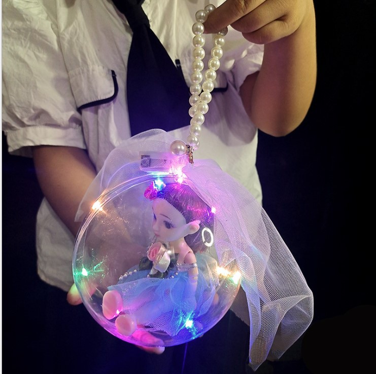 手提精美公主娃娃珍珠链, 精致的五官,3D闪亮大眼睛,百变造型, 彩盒包装,12寸圆球小公主,越看越喜欢,宝贝爱不释手…… 一盒9个装 低于9个拍的亲亲 没有彩盒装哦