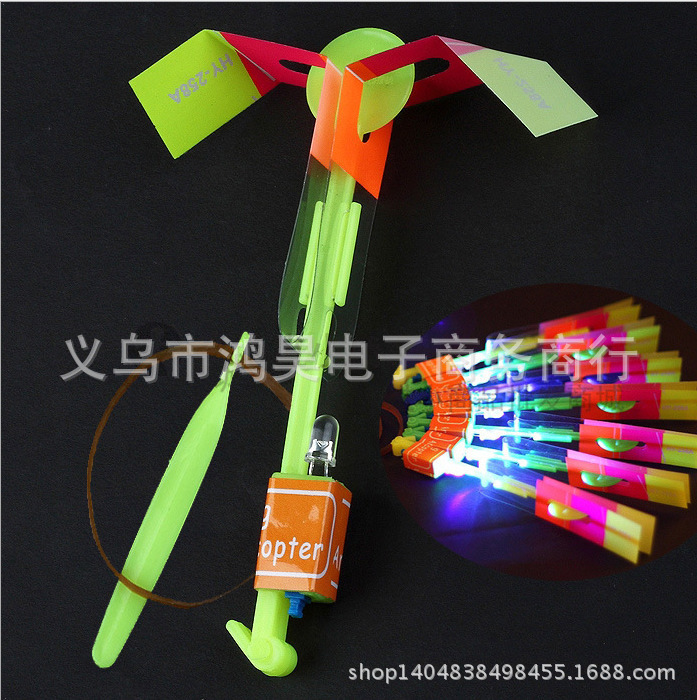 开彩灯的开关,以橡皮筋弹射于空中(可飞三四层楼高) 飞碟以螺旋桨旋转的形式带有五彩缤纷的颜色自由降落,款式新颖,产品独特,适合晚间在公园,广场上玩耍,深受小朋友们的喜欢。