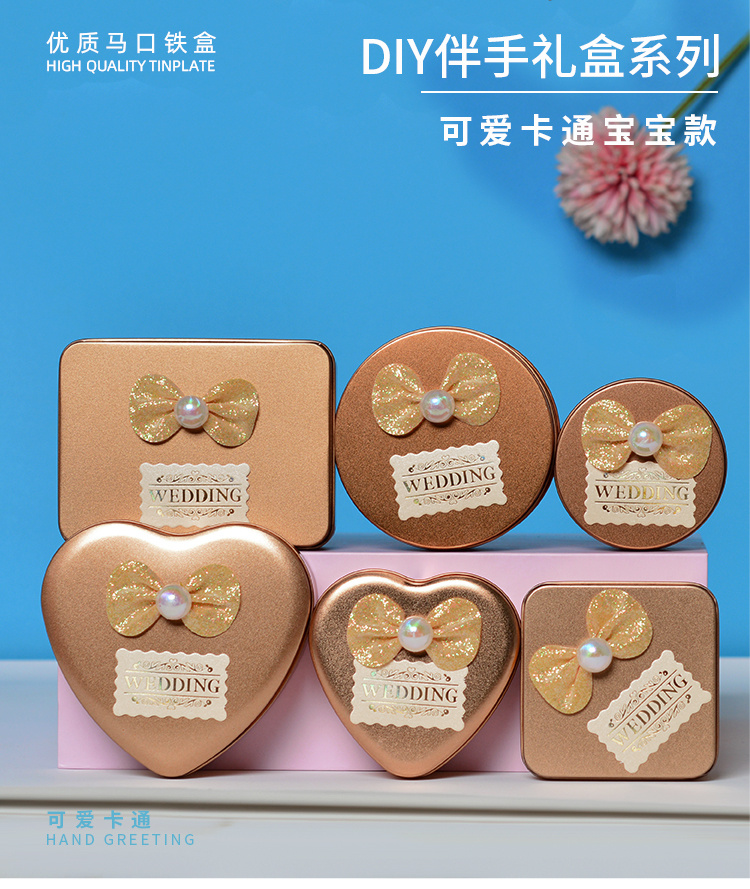 创意DIY马口铁盒情人节喜糖盒礼盒粘花婚庆回礼包装铁盒批发
