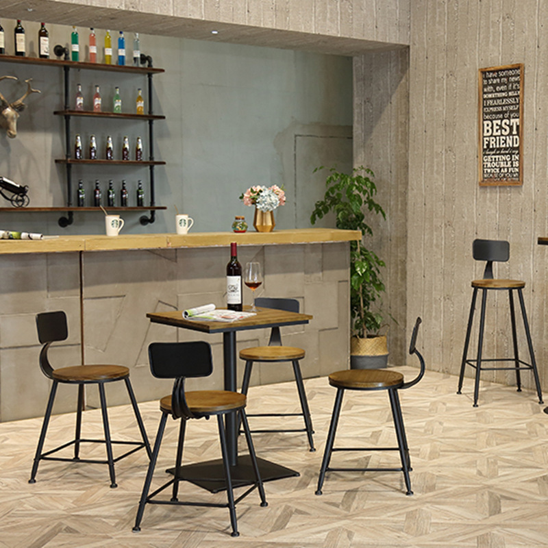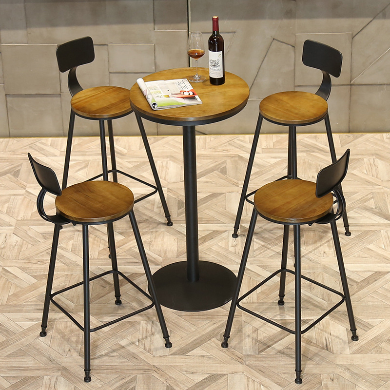 实木铁艺loft高脚凳酒吧桌咖啡高吧台工业风奶茶店休闲吧台小圆桌