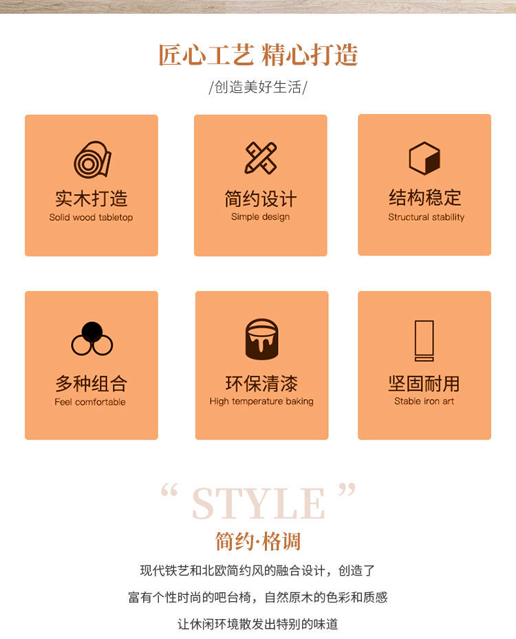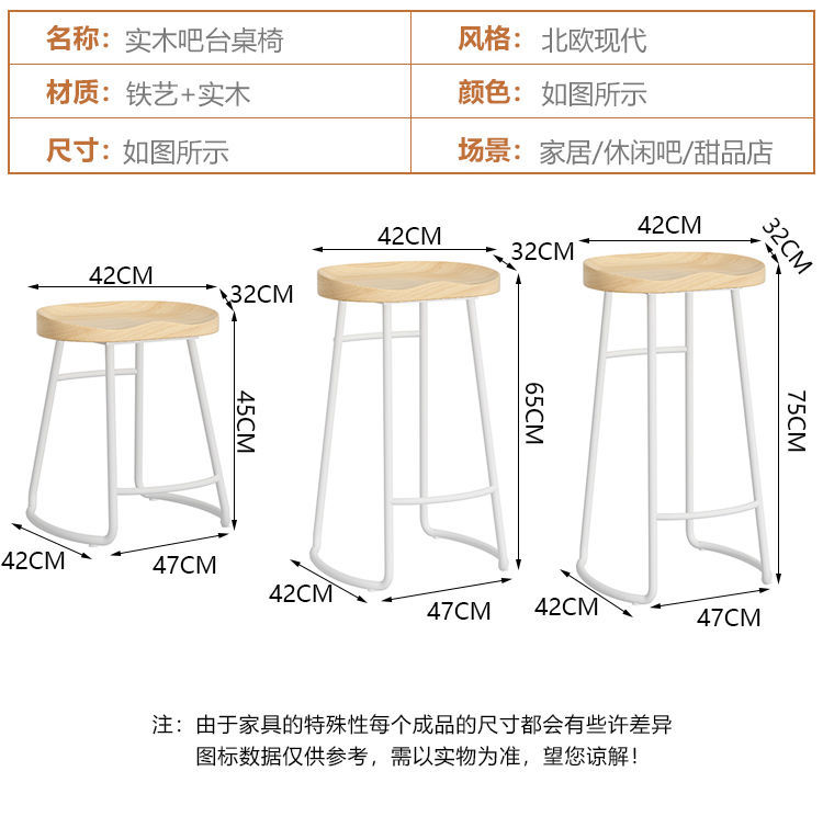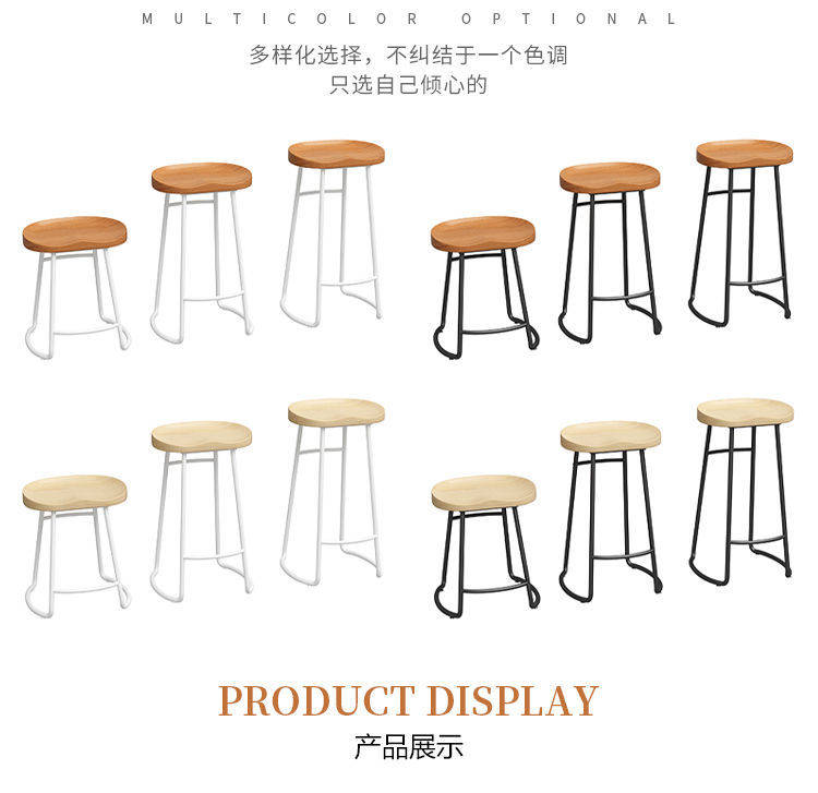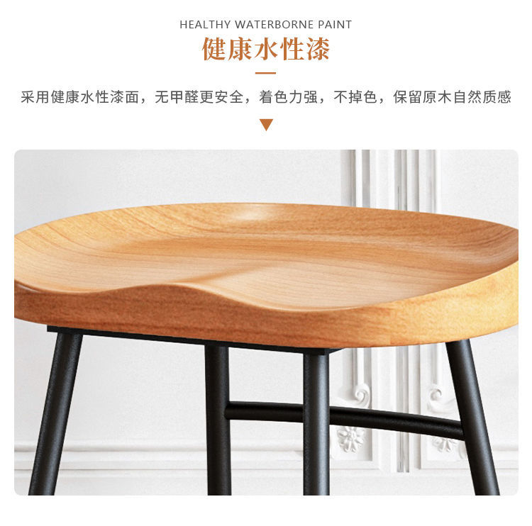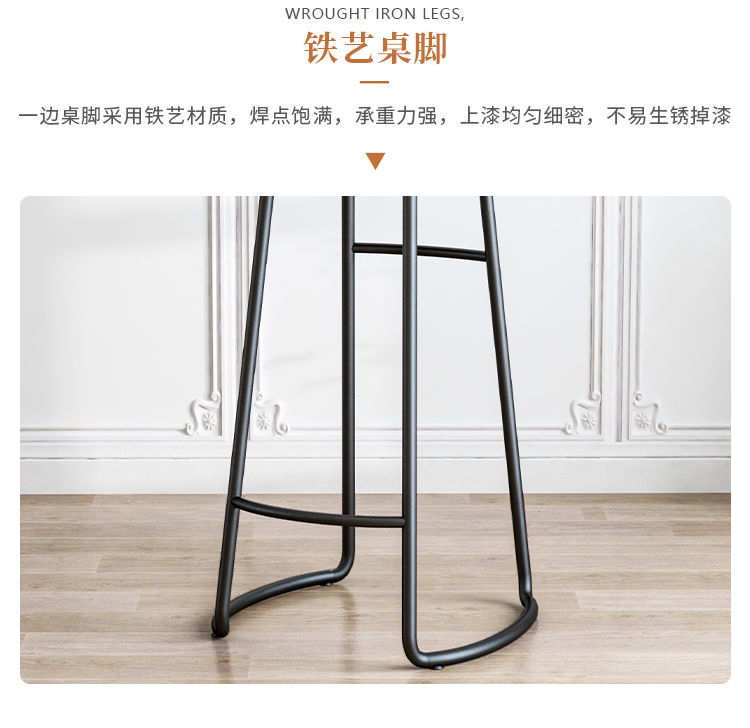 简约现代铁艺实木吧台椅酒吧椅家用奶茶店创意吧椅前台高脚椅凳子 投诉