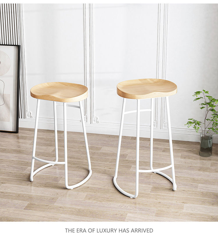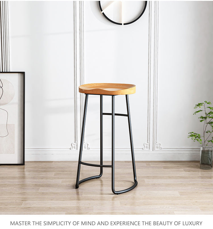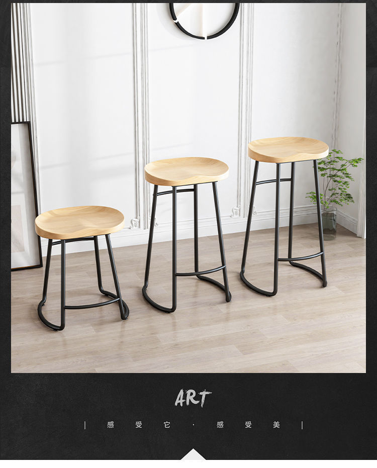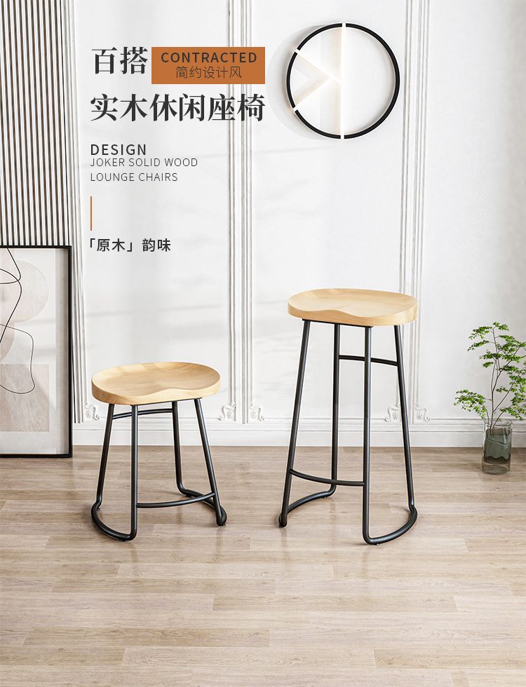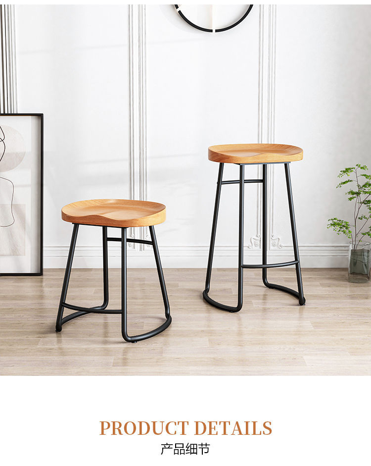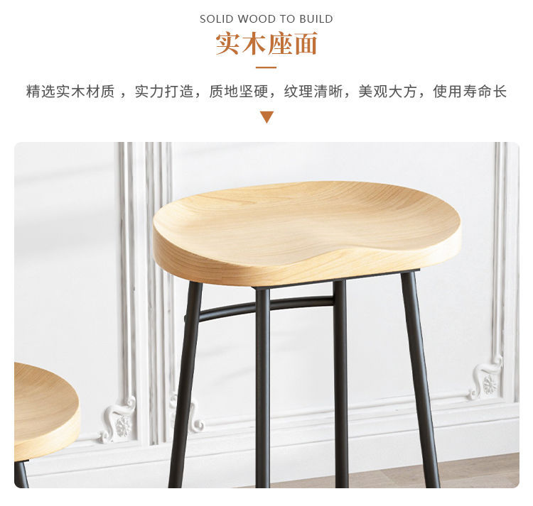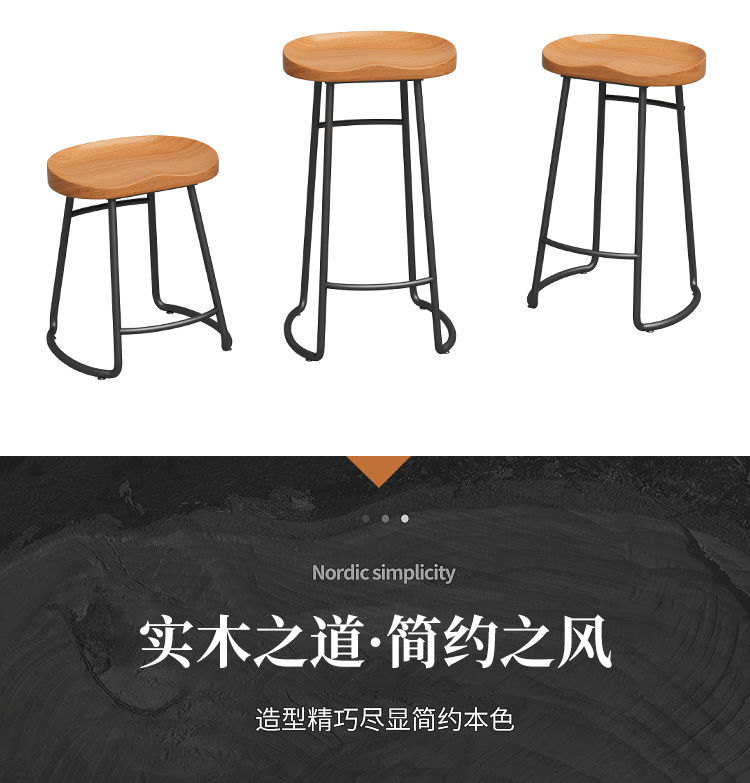 简约现代铁艺实木吧台椅酒吧椅家用奶茶店创意吧椅前台高脚椅凳子