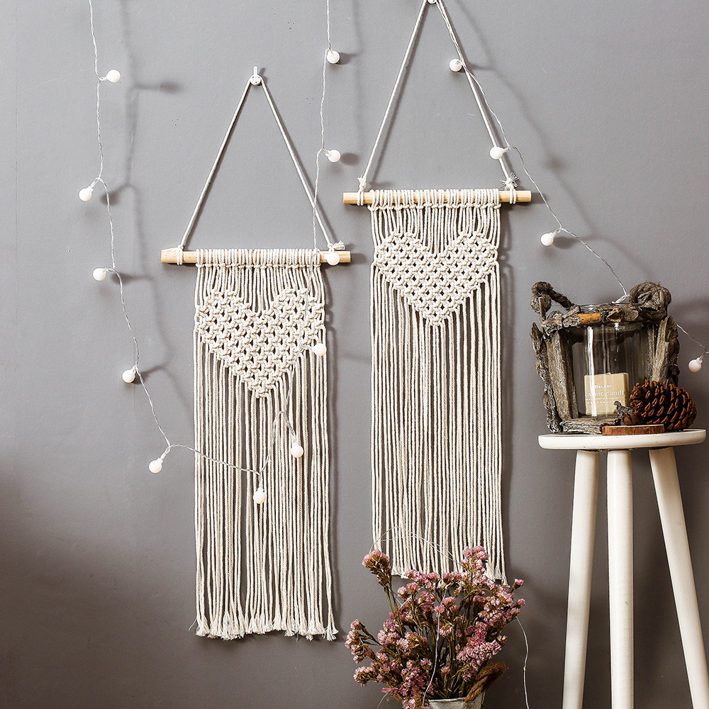 北欧挂毯ins编织棉线爱心挂毯INS婚庆装饰卧室床头墙壁挂毯GT032
