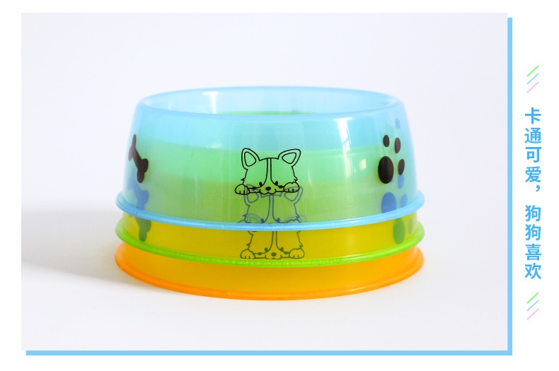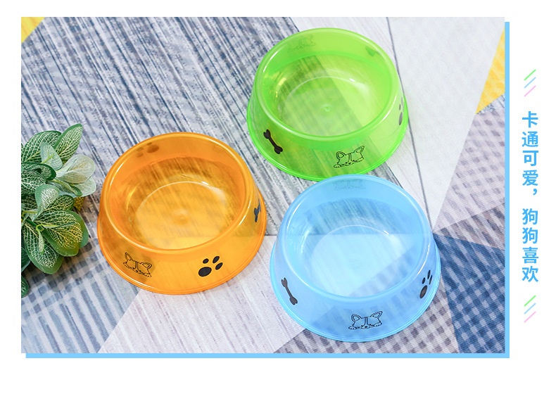 透明卡通图案糖果色宠物单碗15cm轻便易洗大容量喂水食碗