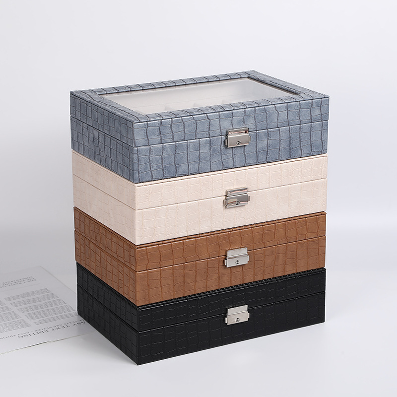 大容量翻盖收纳盒 简约时尚PU皮革饰品盒 分格戒指耳环首饰盒