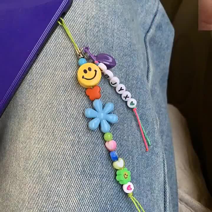 新款笑脸英文字母手机链包包挂件少女挂绳软陶太阳花爱心友谊礼物 English | 投诉
