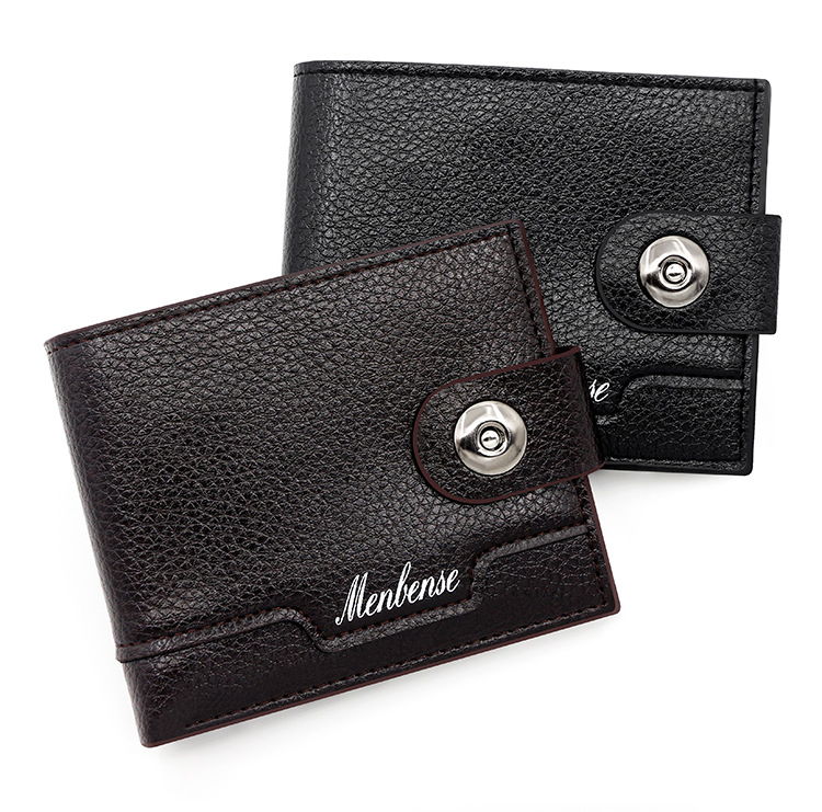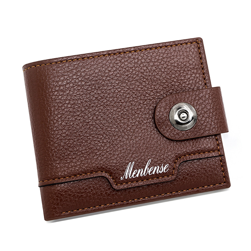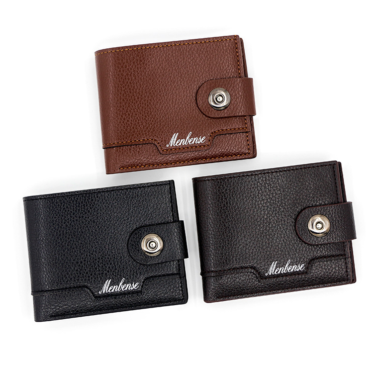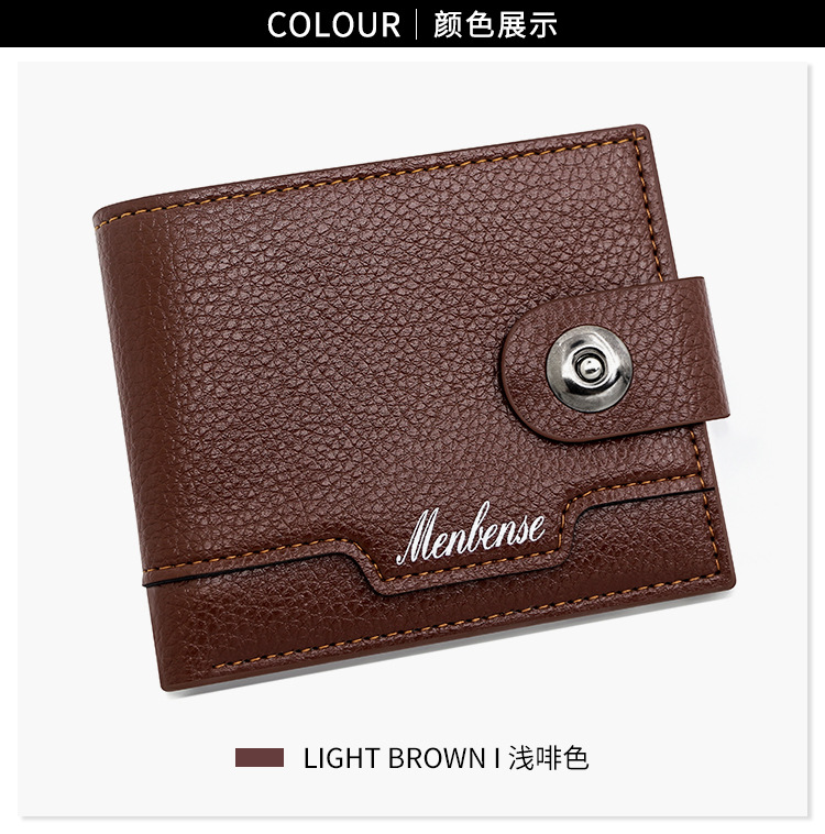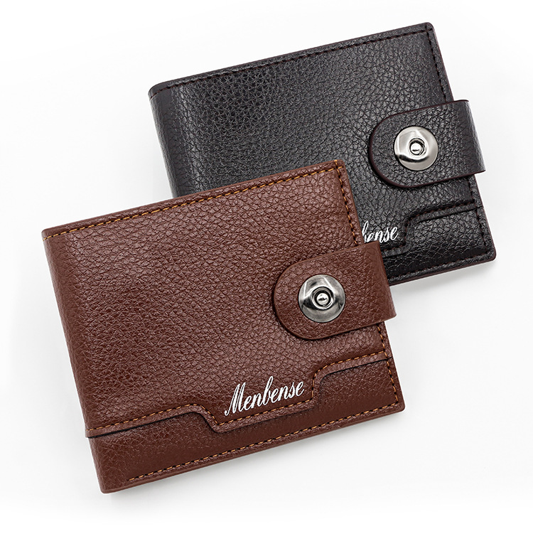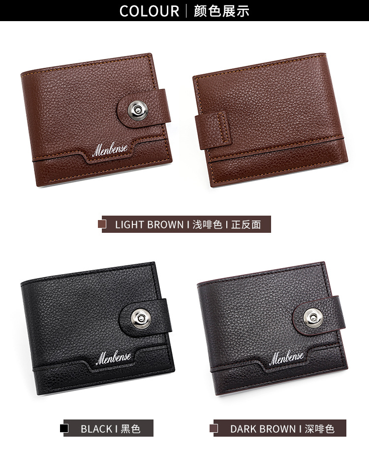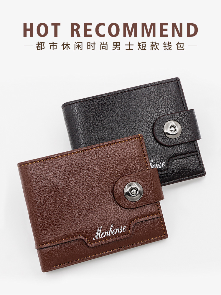 时尚男士短款荔枝纹钱包多卡位简约证件包卡包个性搭扣手拿包