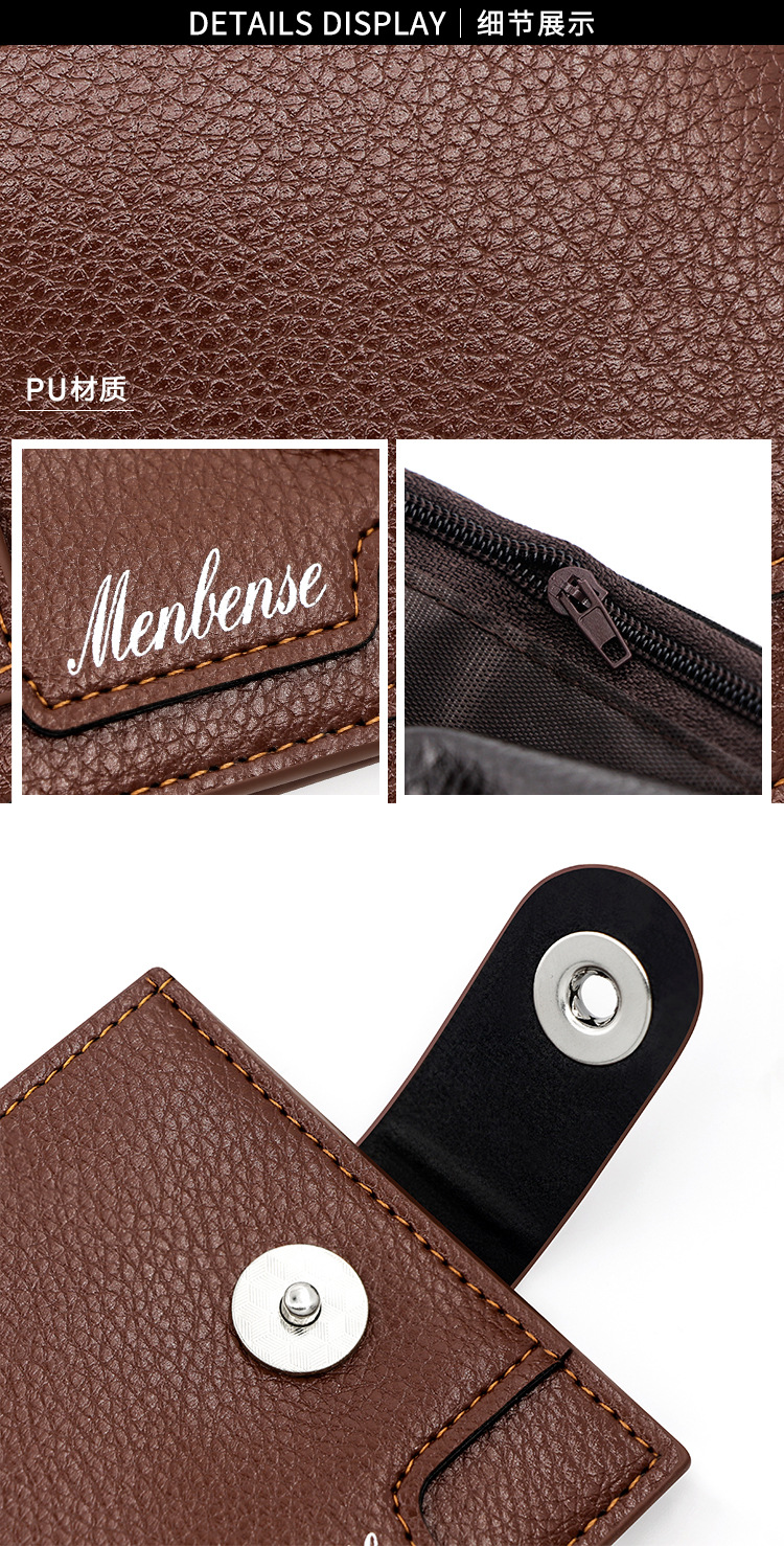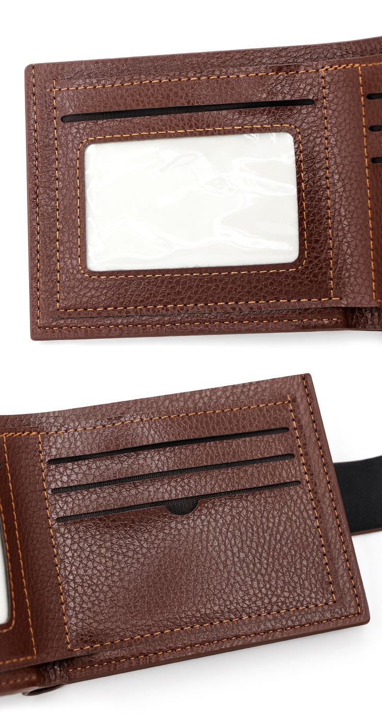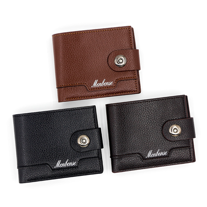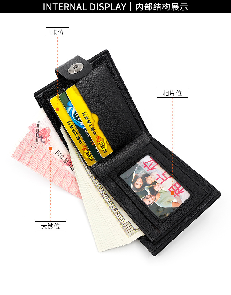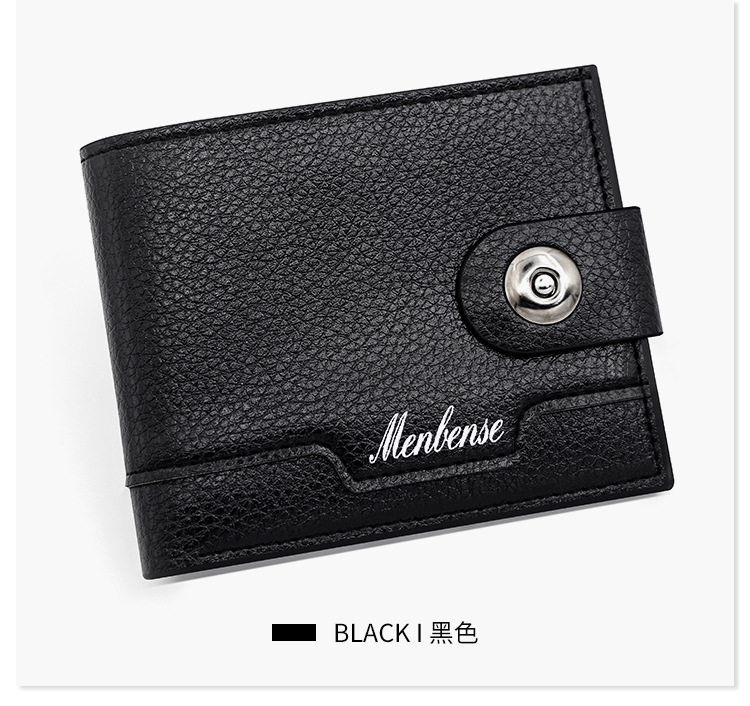 时尚男士短款荔枝纹钱包多卡位简约证件包卡包个性搭扣手拿包