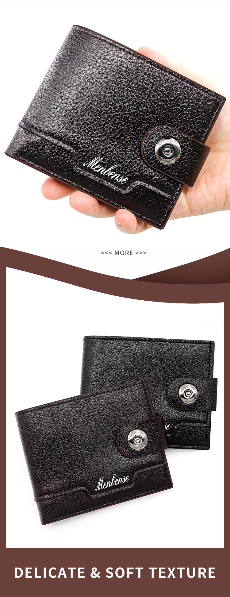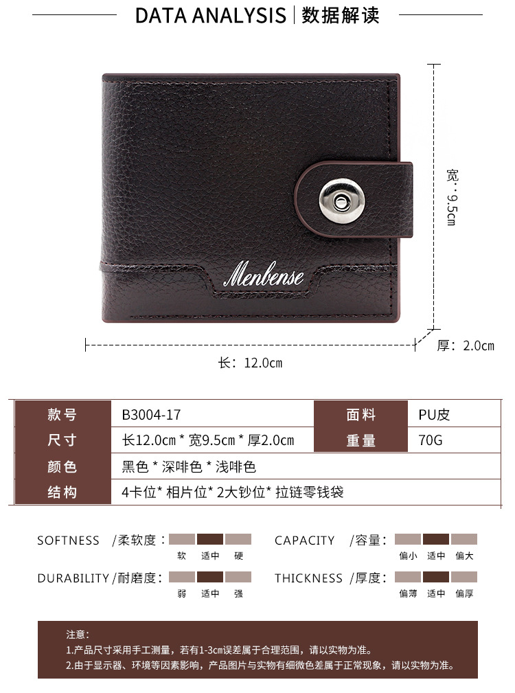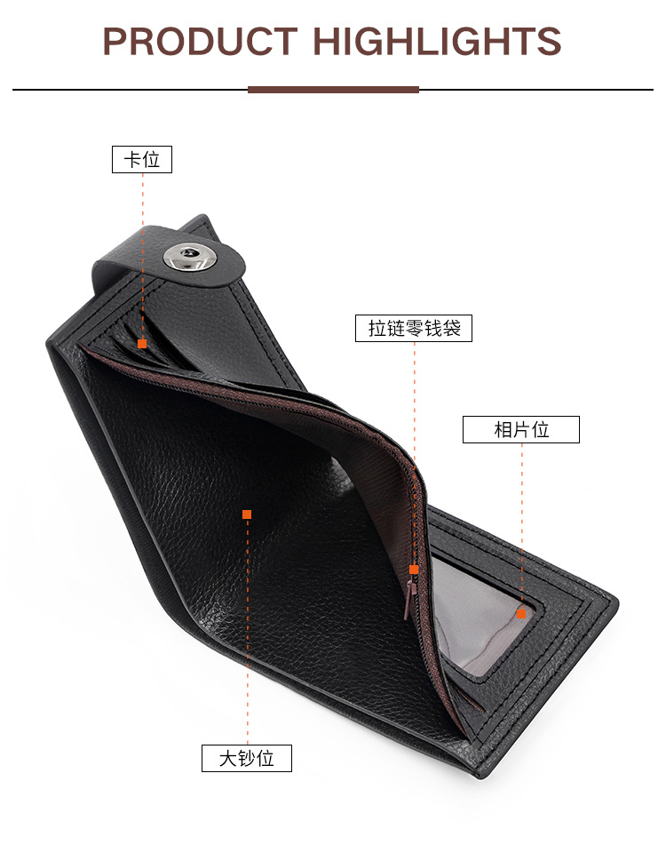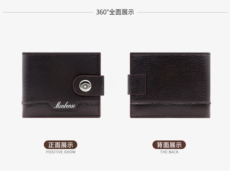 时尚男士短款荔枝纹钱包多卡位简约证件包卡包个性搭扣手拿包 投诉