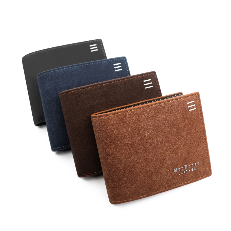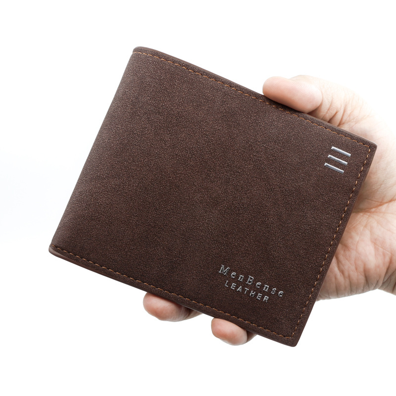 商务男士钱包短款 纯色复古磨砂零钱包手拿包磨砂皮夹男
