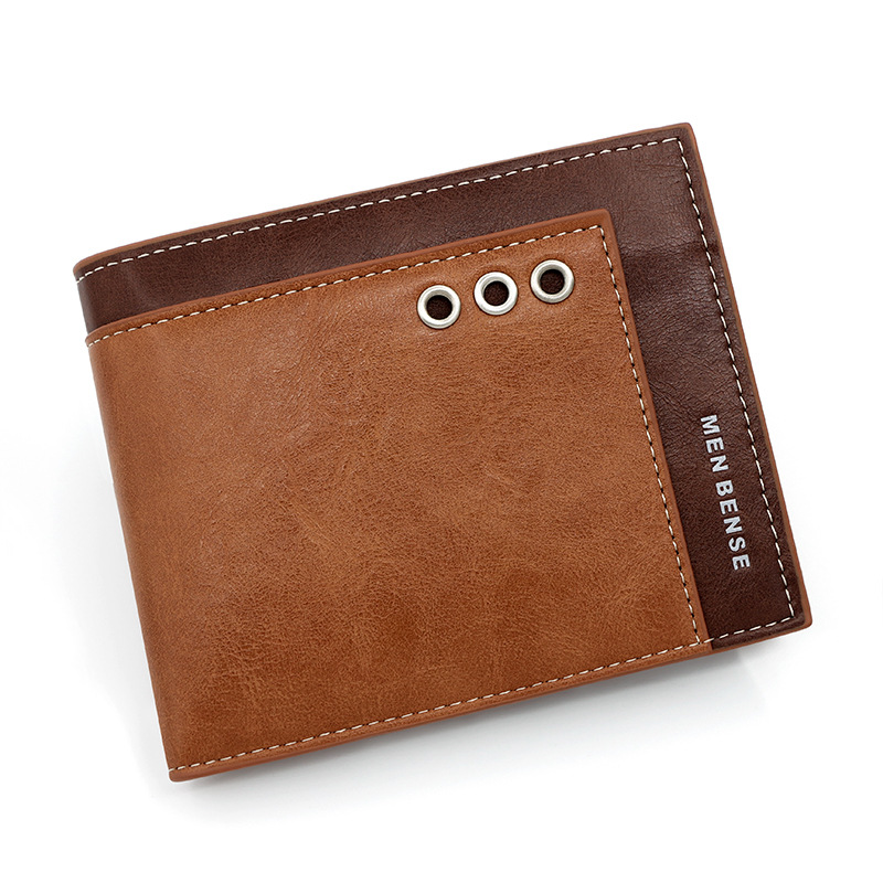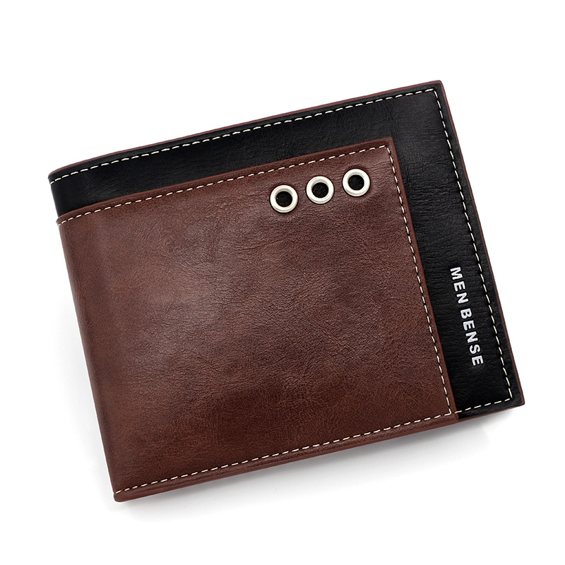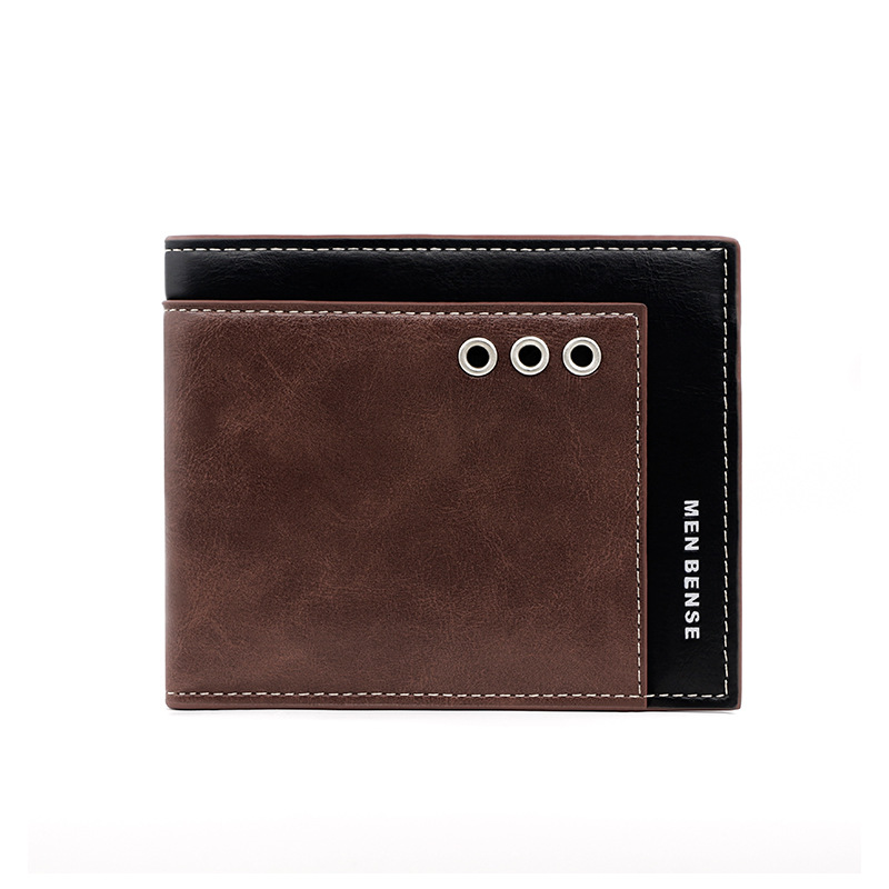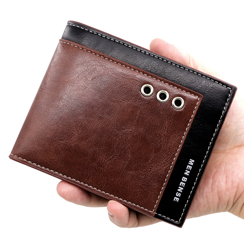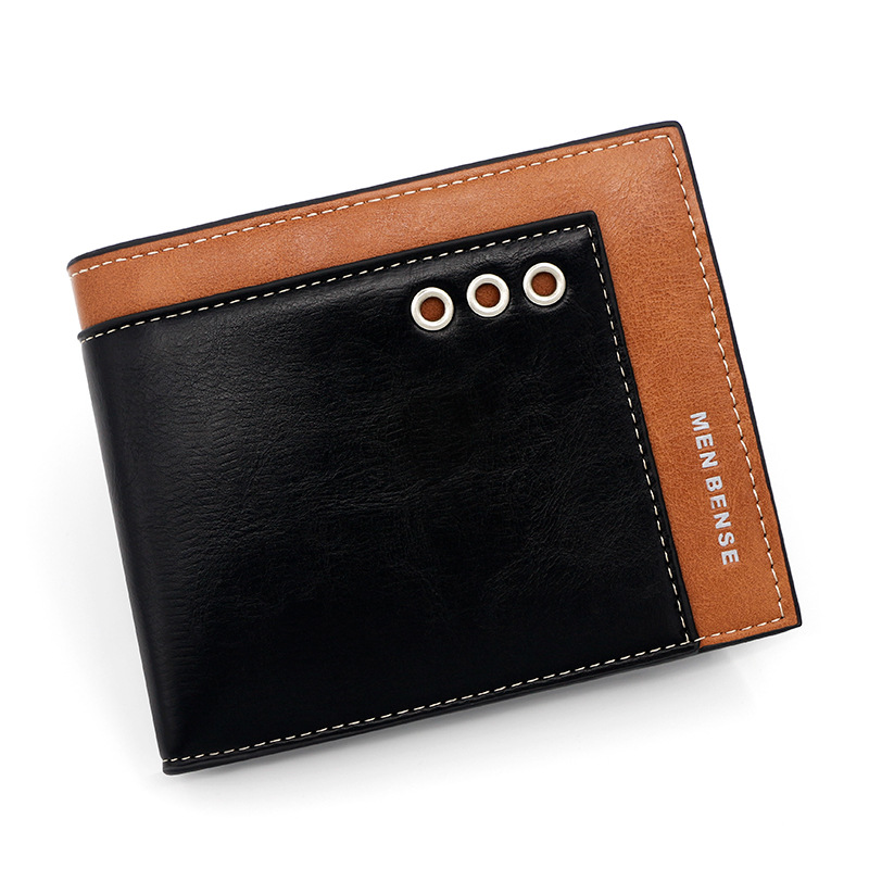 商务男士短款钱包拼接撞色零钱包手拿包三折活页卡包休闲男士钱夹