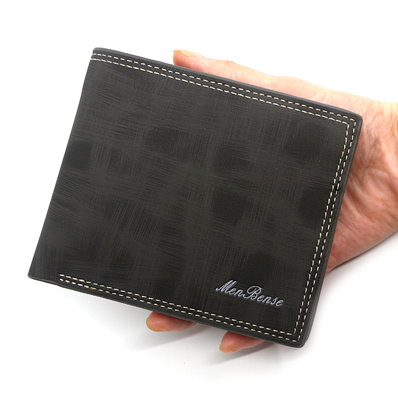男士商务短款钱包磨砂手拿零钱包卡包纯色多卡位钱夹