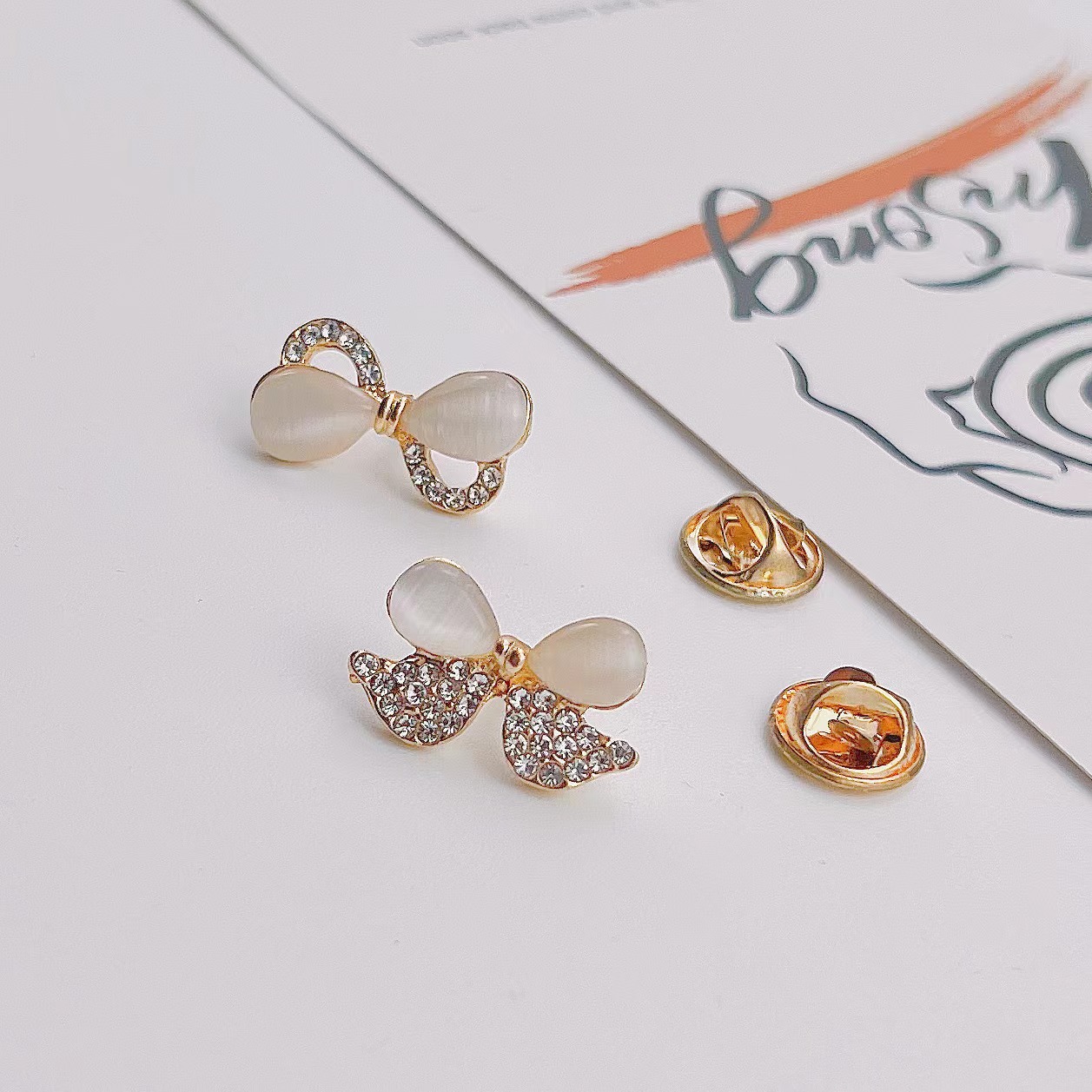 蝴蝶结花朵猫眼石 防走光高档胸口免缝胸针 百搭别针简约固定衣服