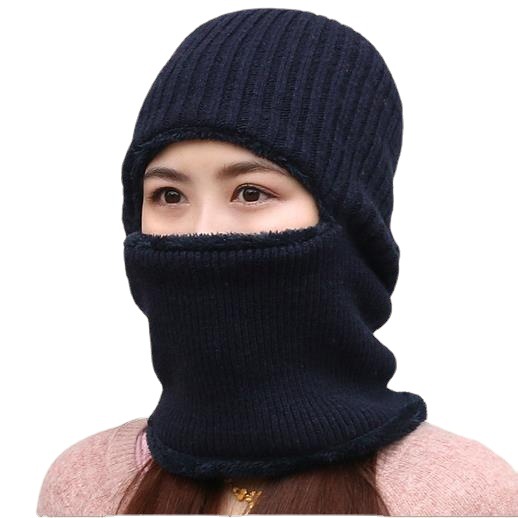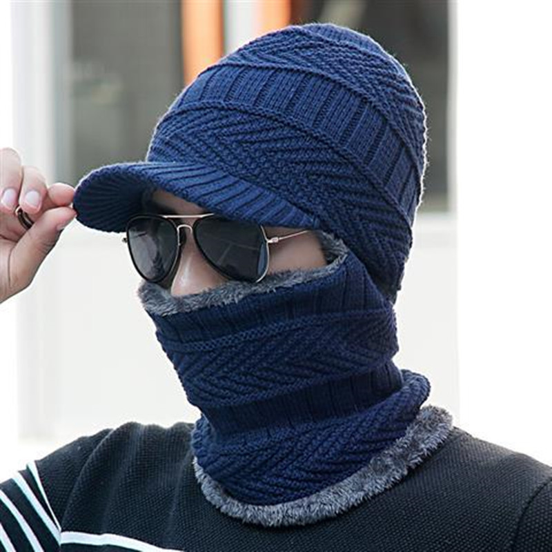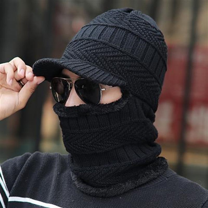 冬季新款青年毛线帽 围脖一体东北防寒套头帽 冬天加厚针织帽男