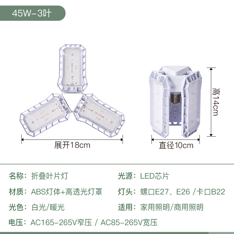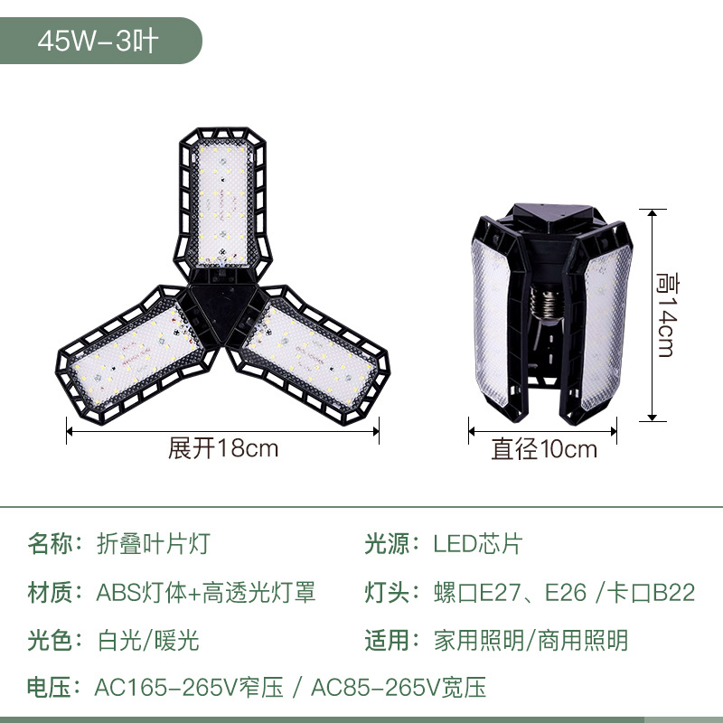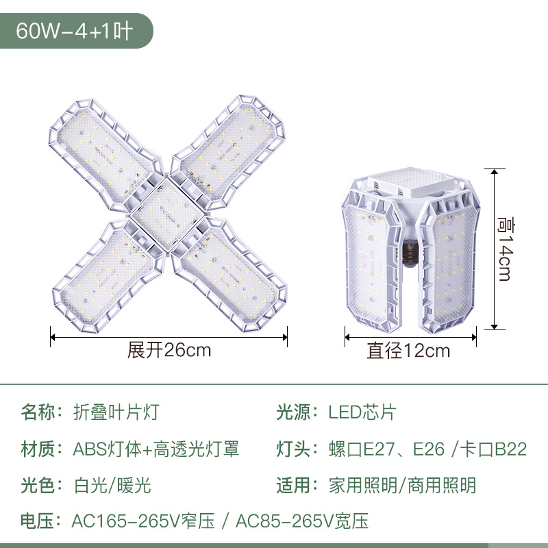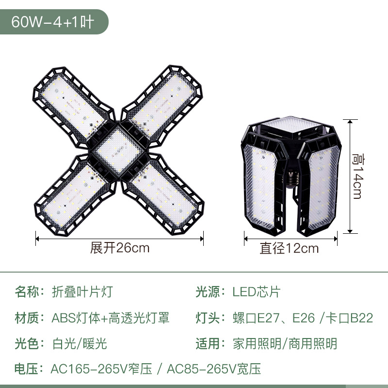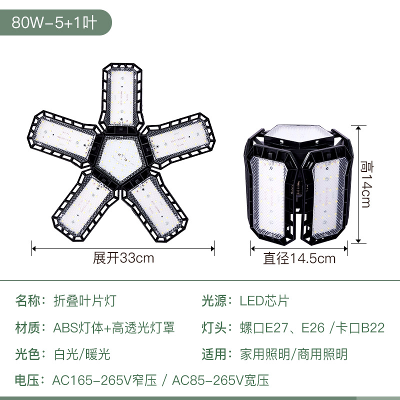 新款金刚侠led折叠车库叶子灯泡宽压 4叶60W5叶80W亚马逊外贸供货 English | 投诉