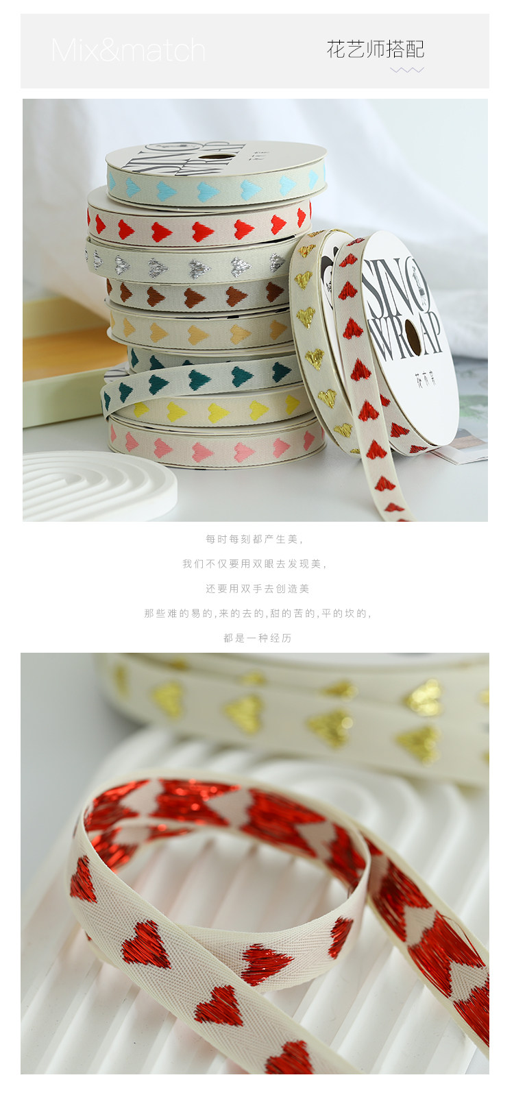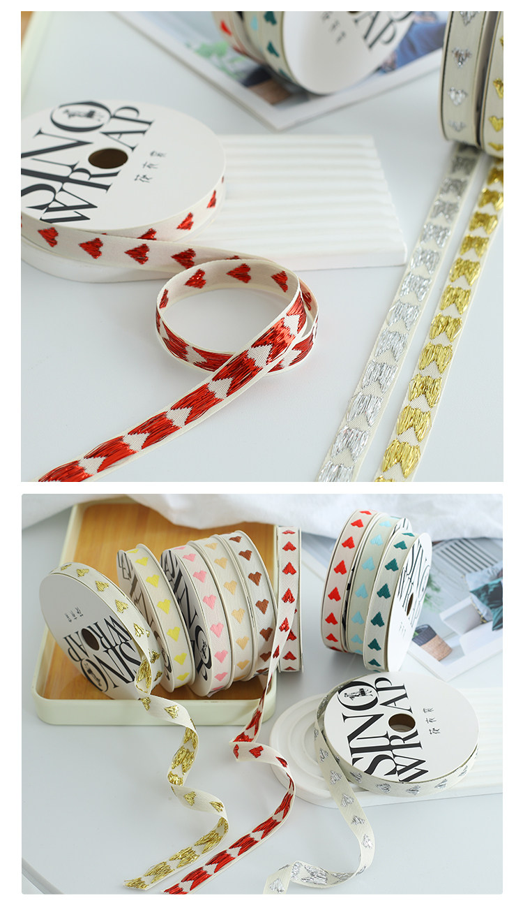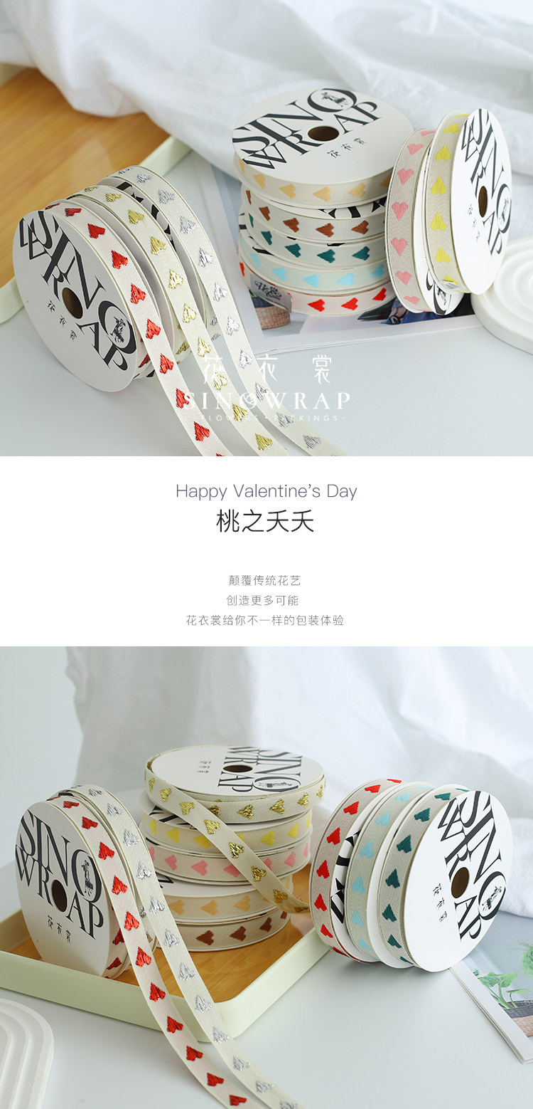 花衣裳 爱心织带粉红金银情人节少女风蝴蝶结花束包装丝带绣花带 投诉