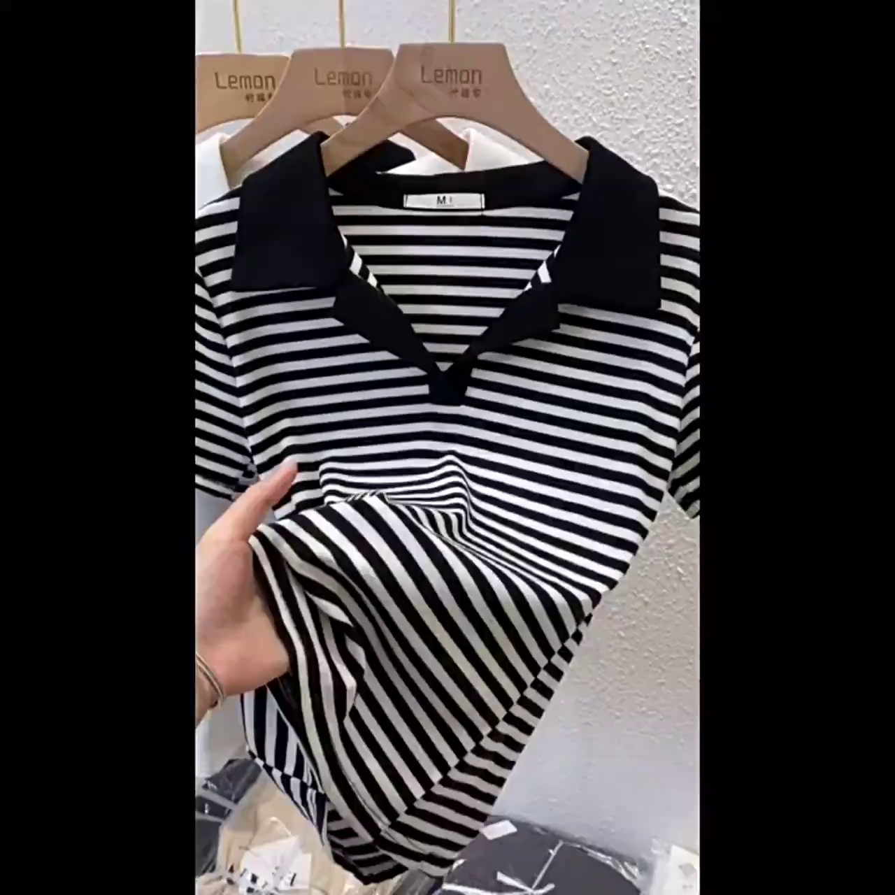 洋气百搭POLO领短袖条纹t恤女2023秋装新款小众设计感辣妹上衣ins 投诉