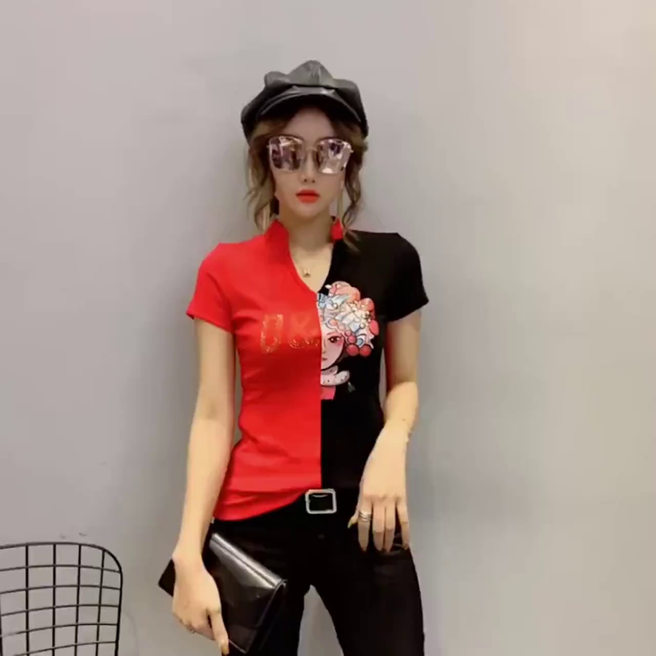 夏季女装镂空短袖t恤女打底衫修身显瘦上衣甜美v领时尚百搭潮清仓 投诉