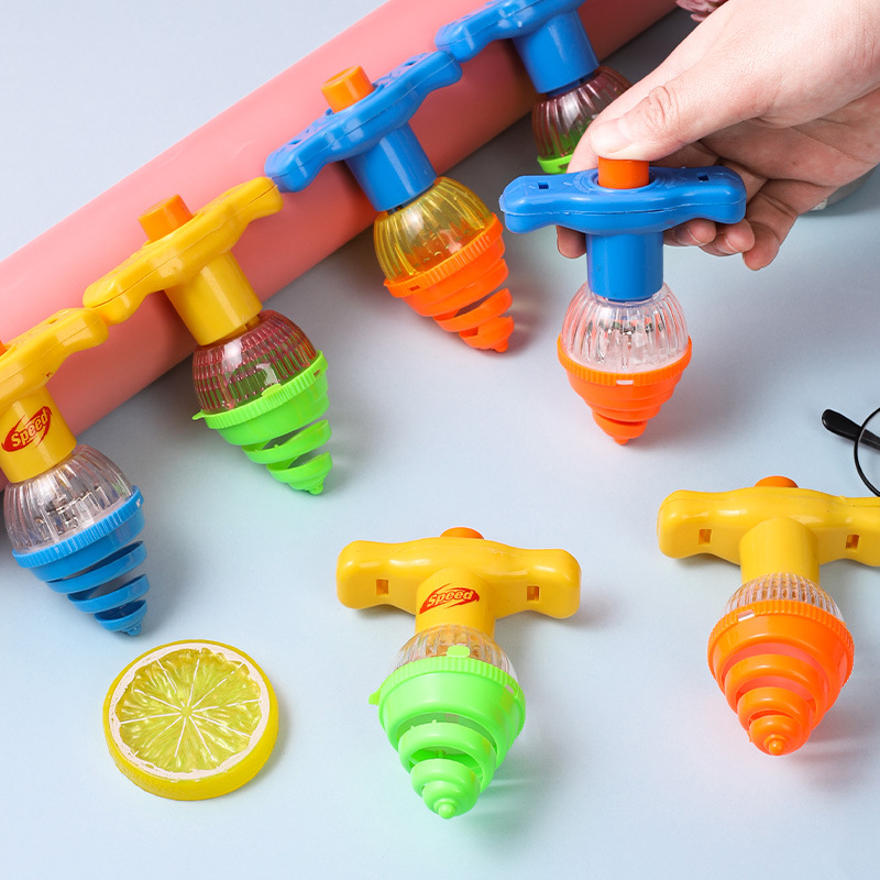 创意儿童闪光发光旋转陀螺上链玩具七彩陀螺弹射带发射器学生奖品