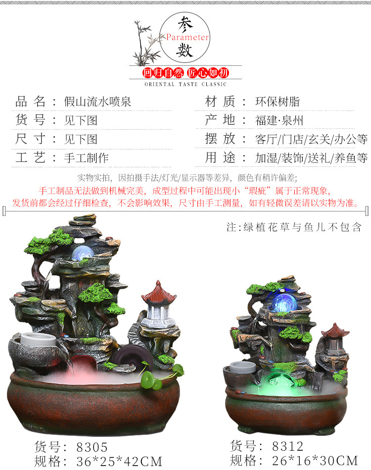 假山流水喷泉鱼缸加湿器家居室内盆景创意开业礼品摆件 English | 投诉