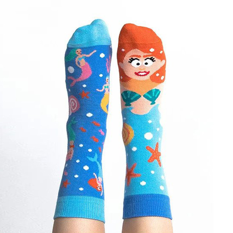 欧美跨境新品趣味潮袜鸳鸯袜不对称b袜中筒提花卡通时尚运动棉袜