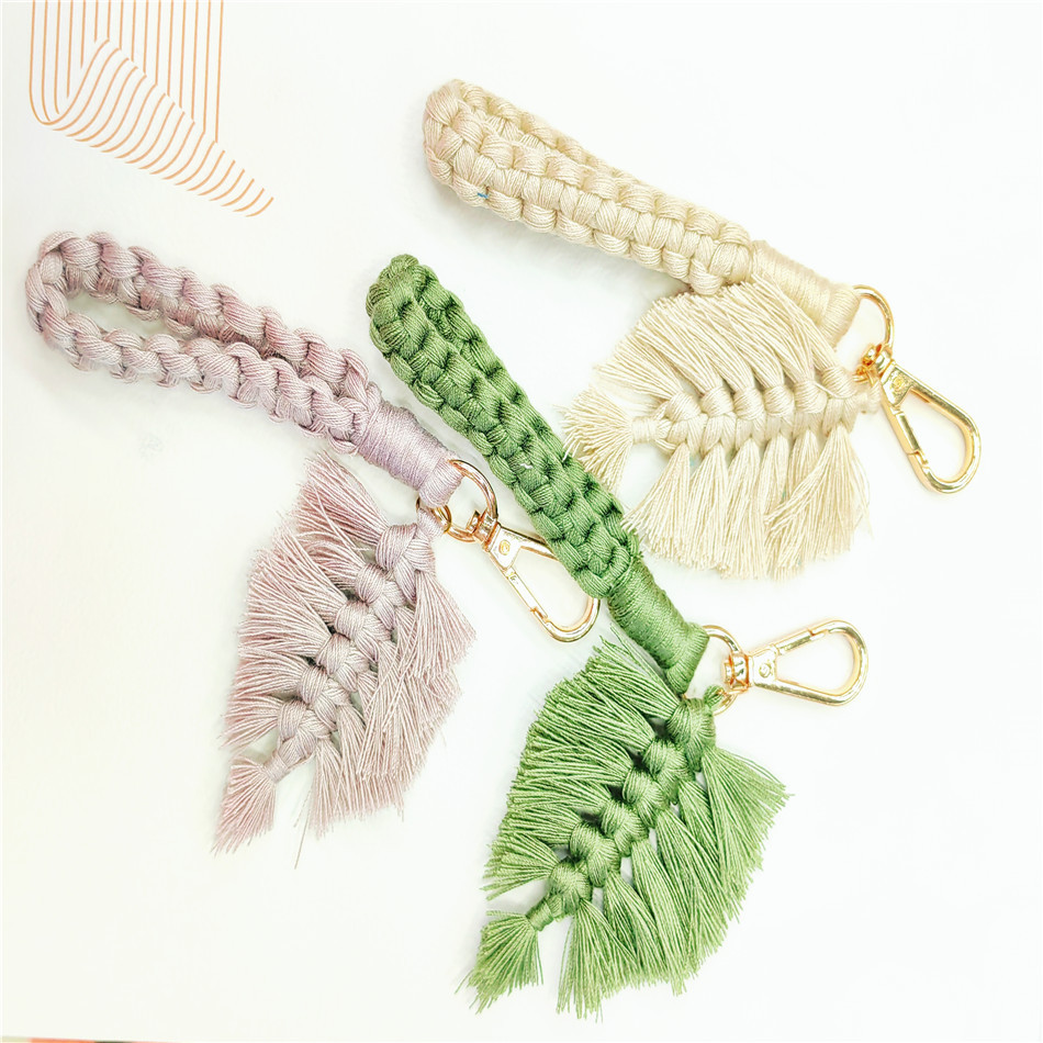 厂家直销 北欧风 纯色手工树叶流苏钥匙扣