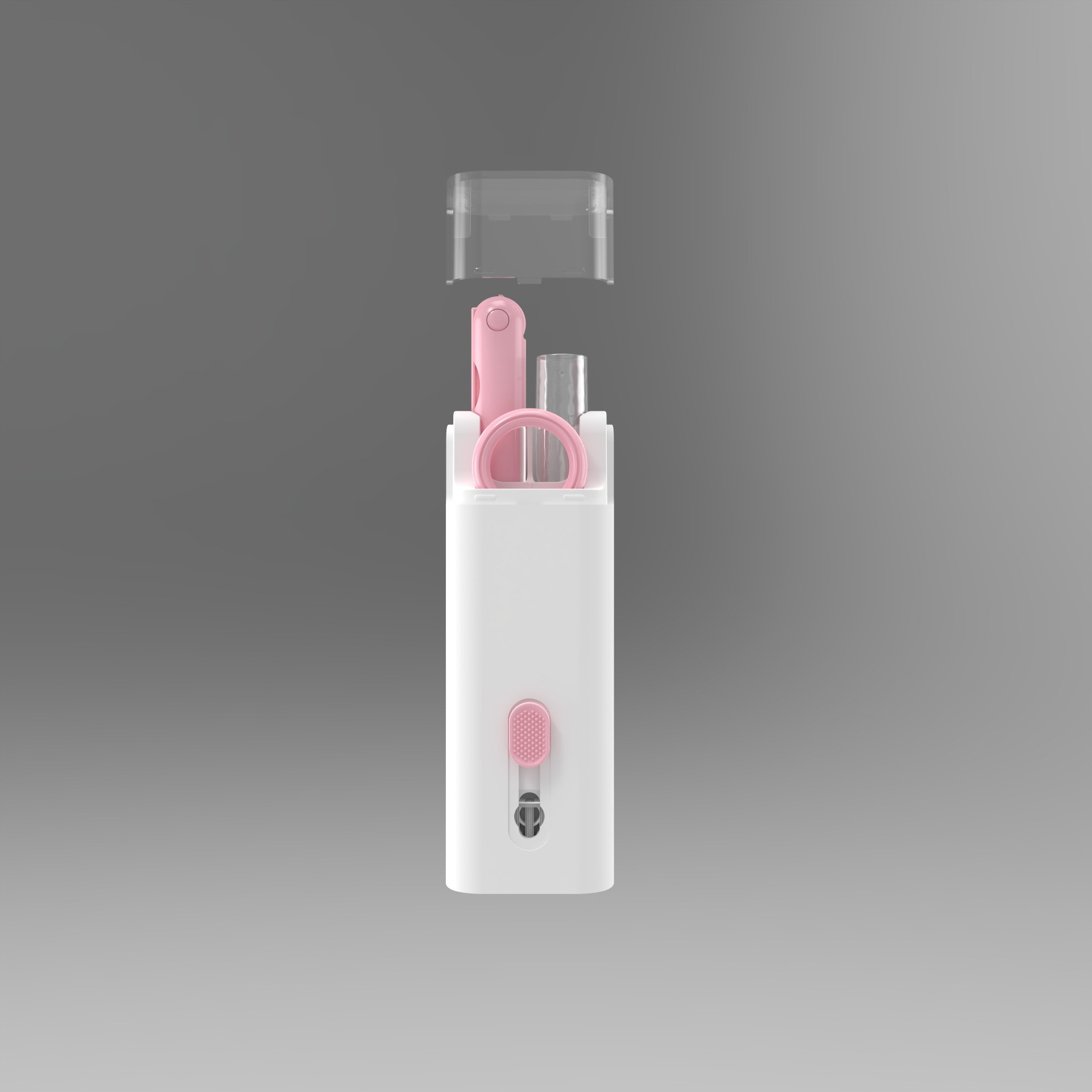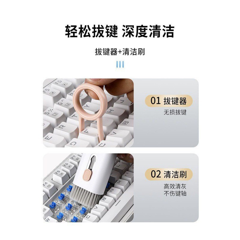 2023新款多功能清洁套装产品名称:Q6E耳机清洁套装,材质:ABS+硅胶+海绵+纤维绒布,套装产品毛重:98g,产品尺寸:12*2.7*4.4cm,产品包装尺寸:14.5*3.5*6cm 整箱净重:12.3kg 整箱毛重:13.3kg,纸箱尺寸:43.5*38*26cm,装箱数:120 PCS