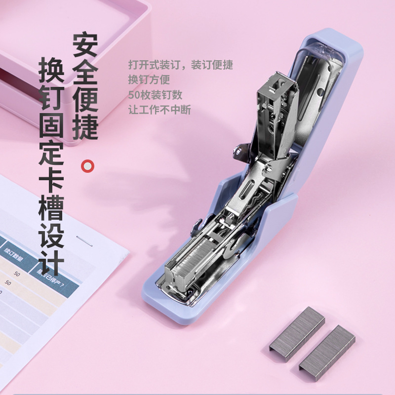 得力0460省力订书机清新学生办公常备高效耐用造型小巧携带方便