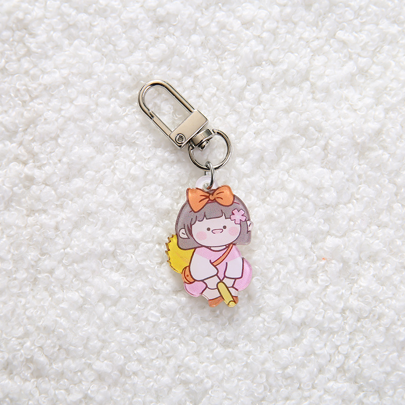 新款可爱亚克力钥匙扣卡通女孩小清新包包装饰挂件少女心钥匙配饰 投诉