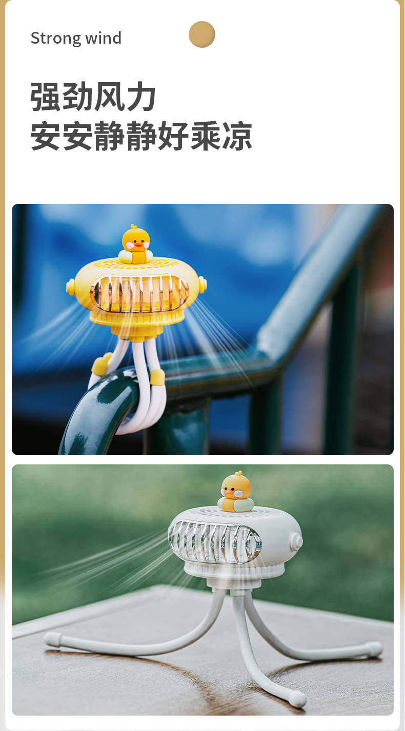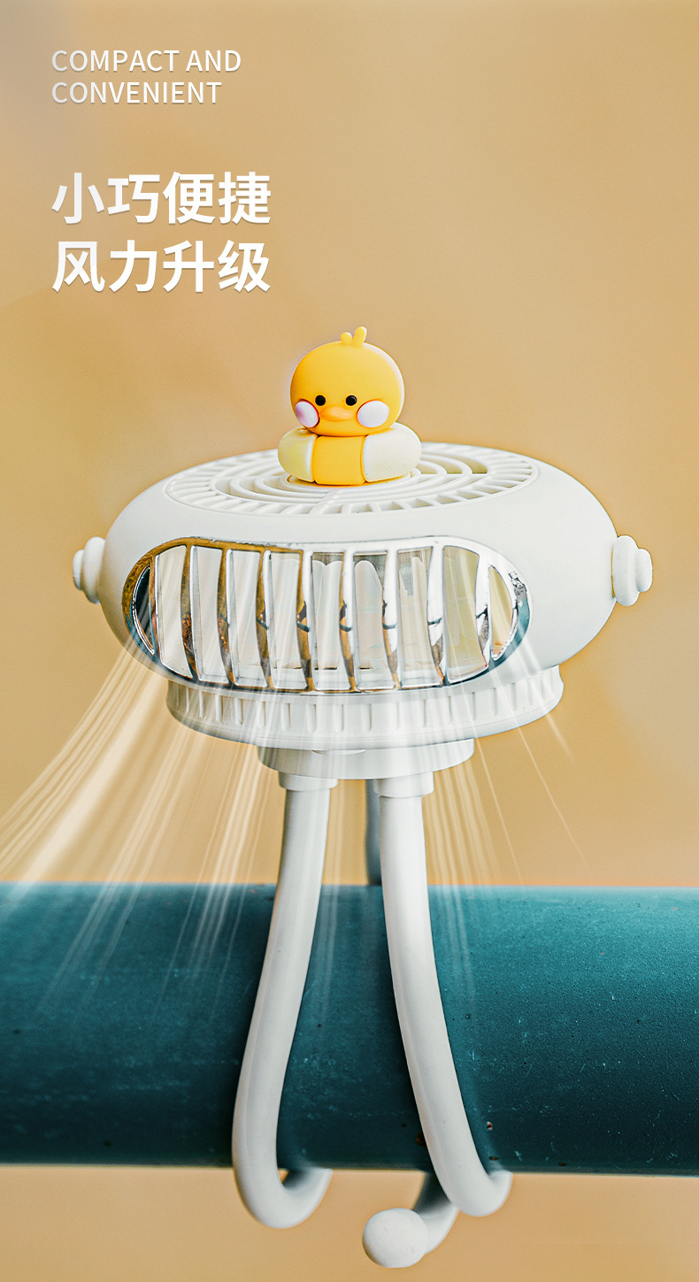 新款婴儿车风扇 小鸭子无叶八爪鱼电风扇 USB便携迷你小风扇