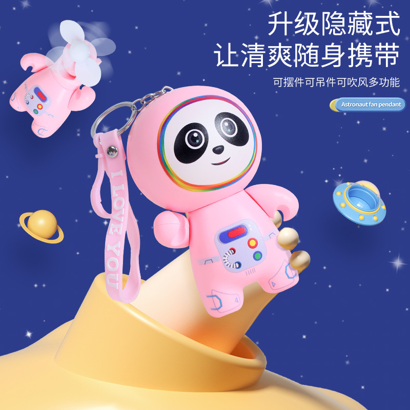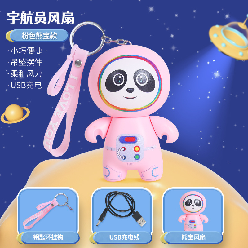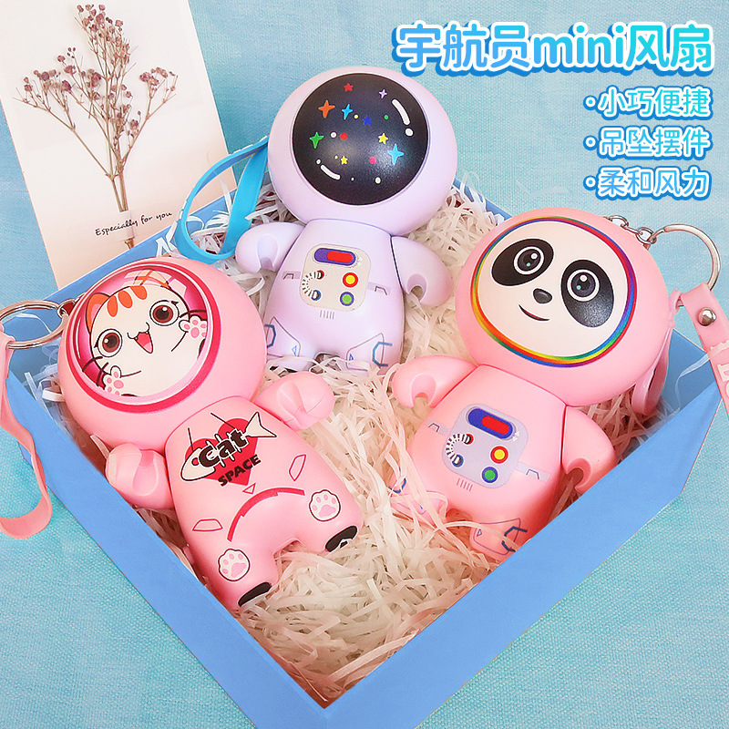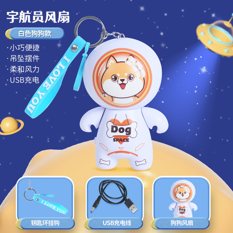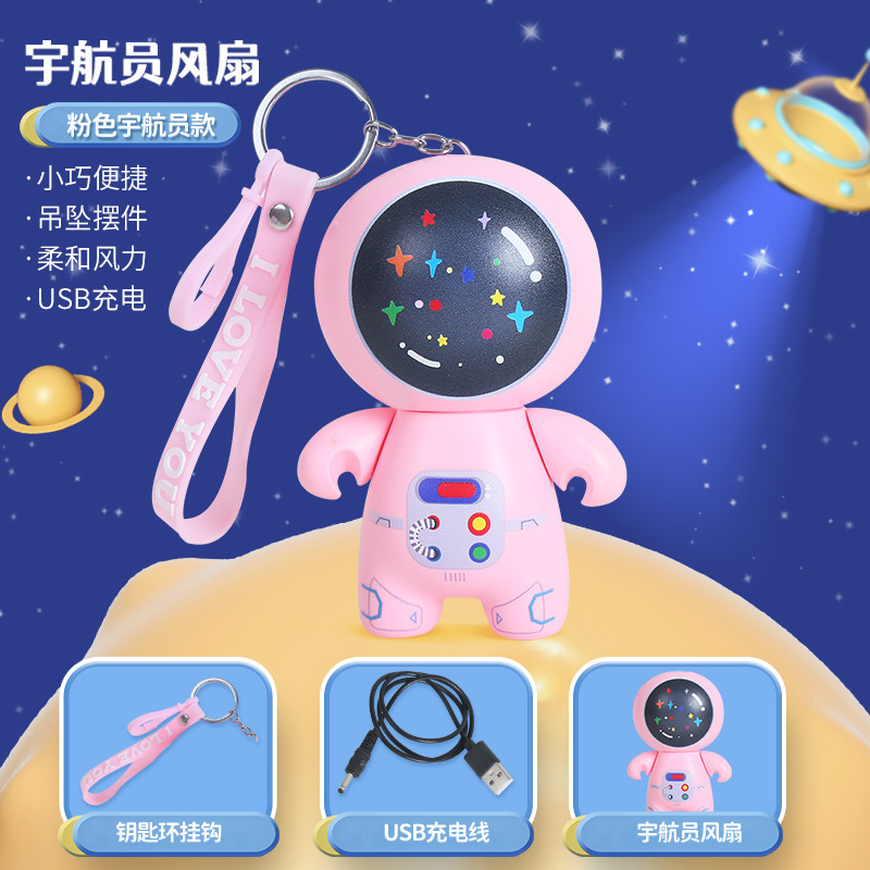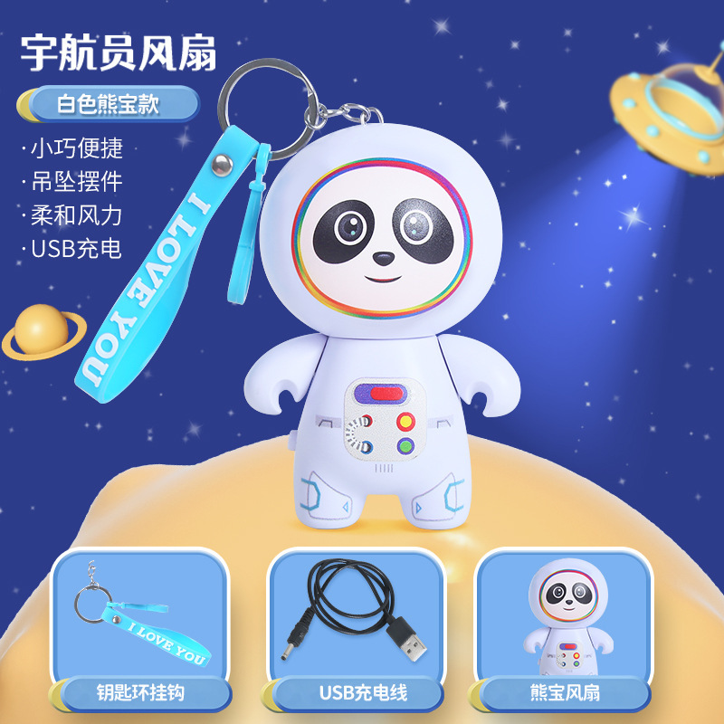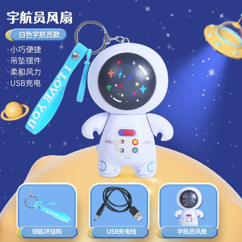 2022新款卡通太空人小风扇钥匙扣USB充电风扇 外出随身便携挂件