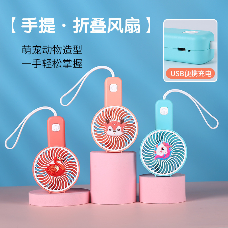 2023新品卡通萌宠折叠小风扇 学生USB充电风扇 折叠手持风扇