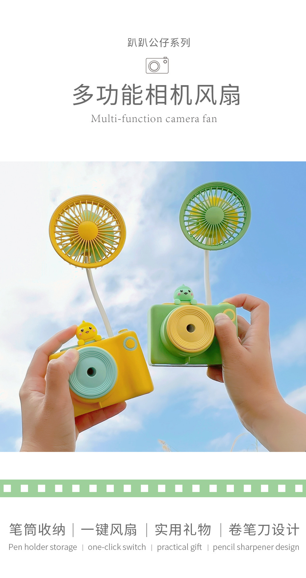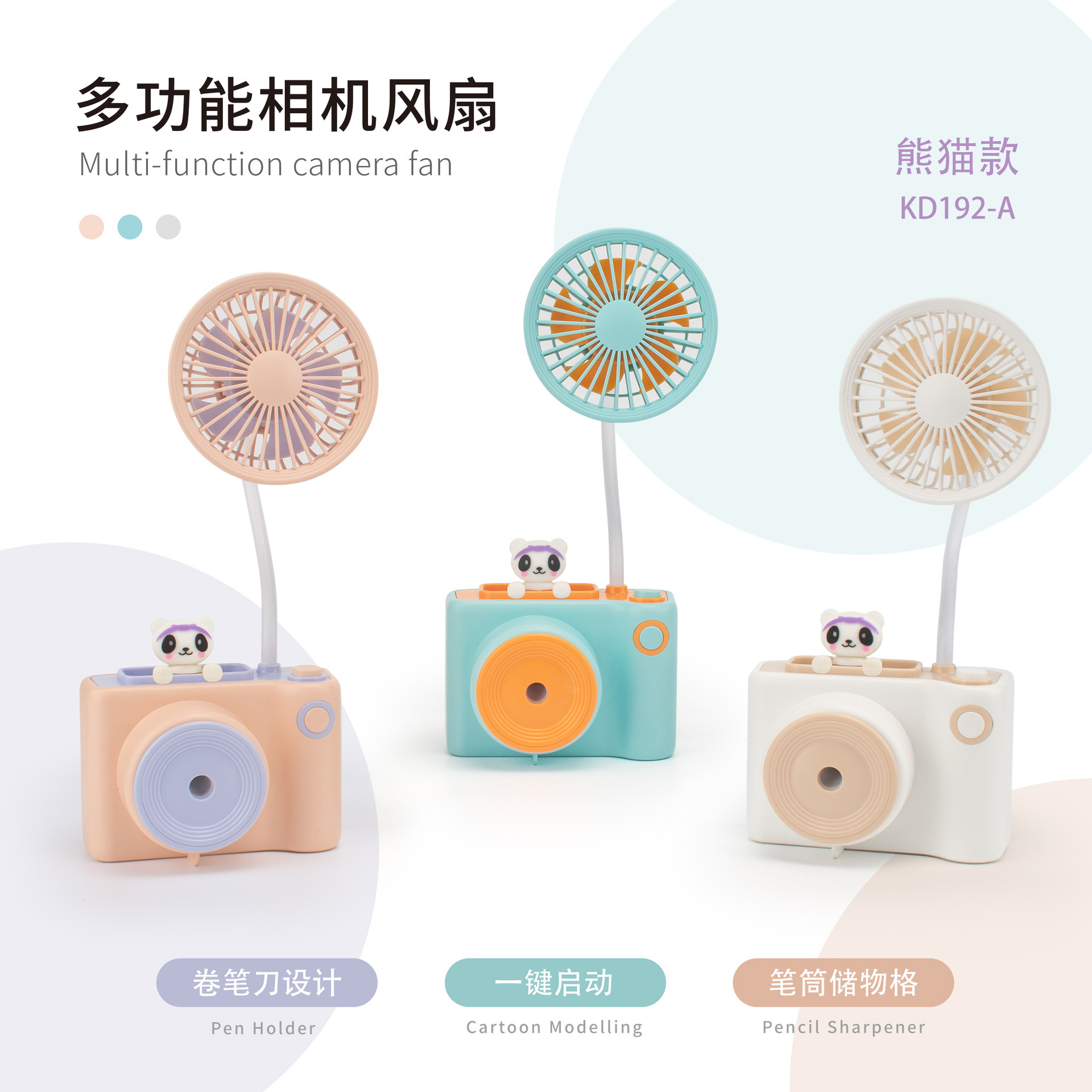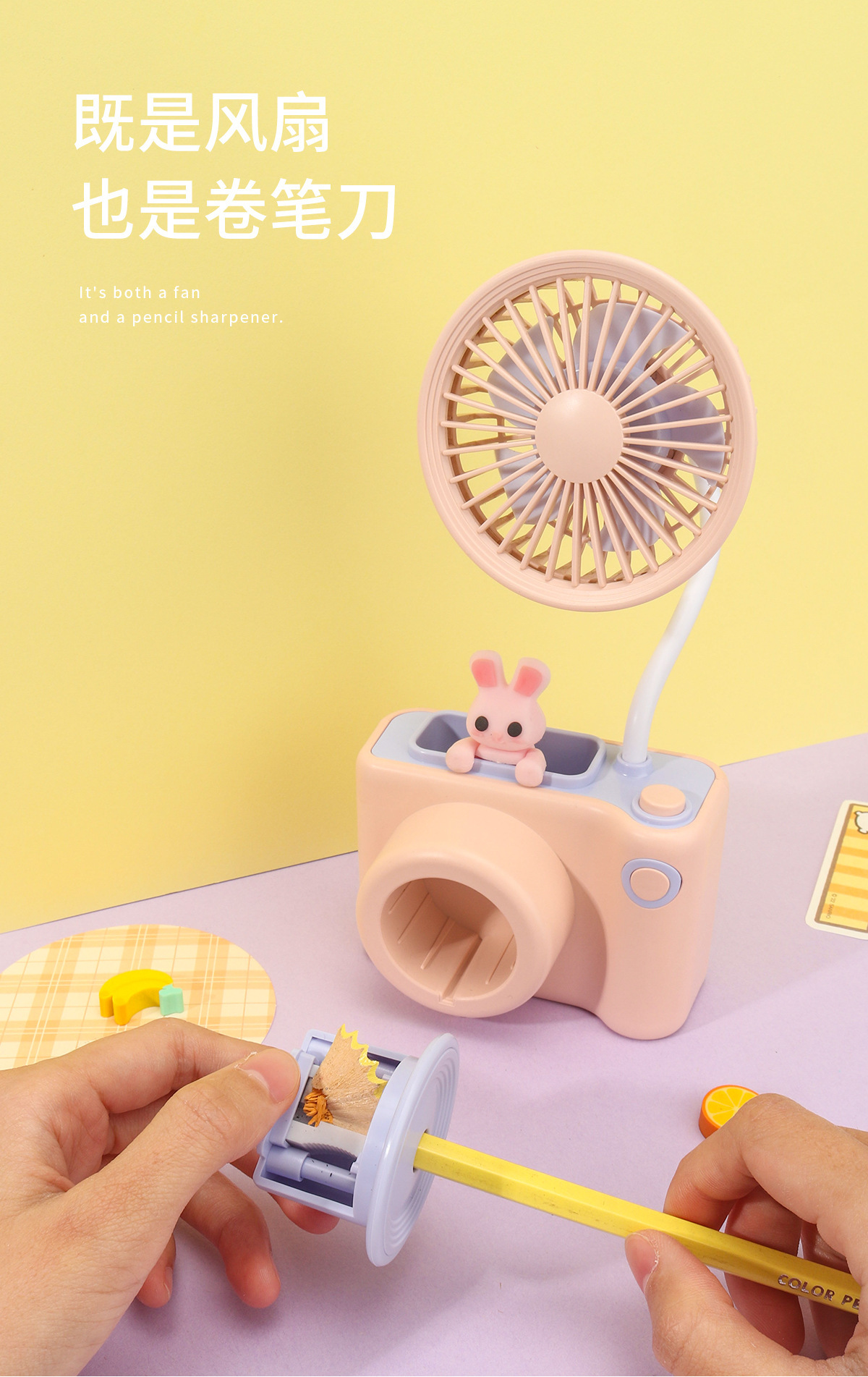 新款相机造型百变软管风扇 USB充电铅笔刨多功能桌面小风扇 礼品