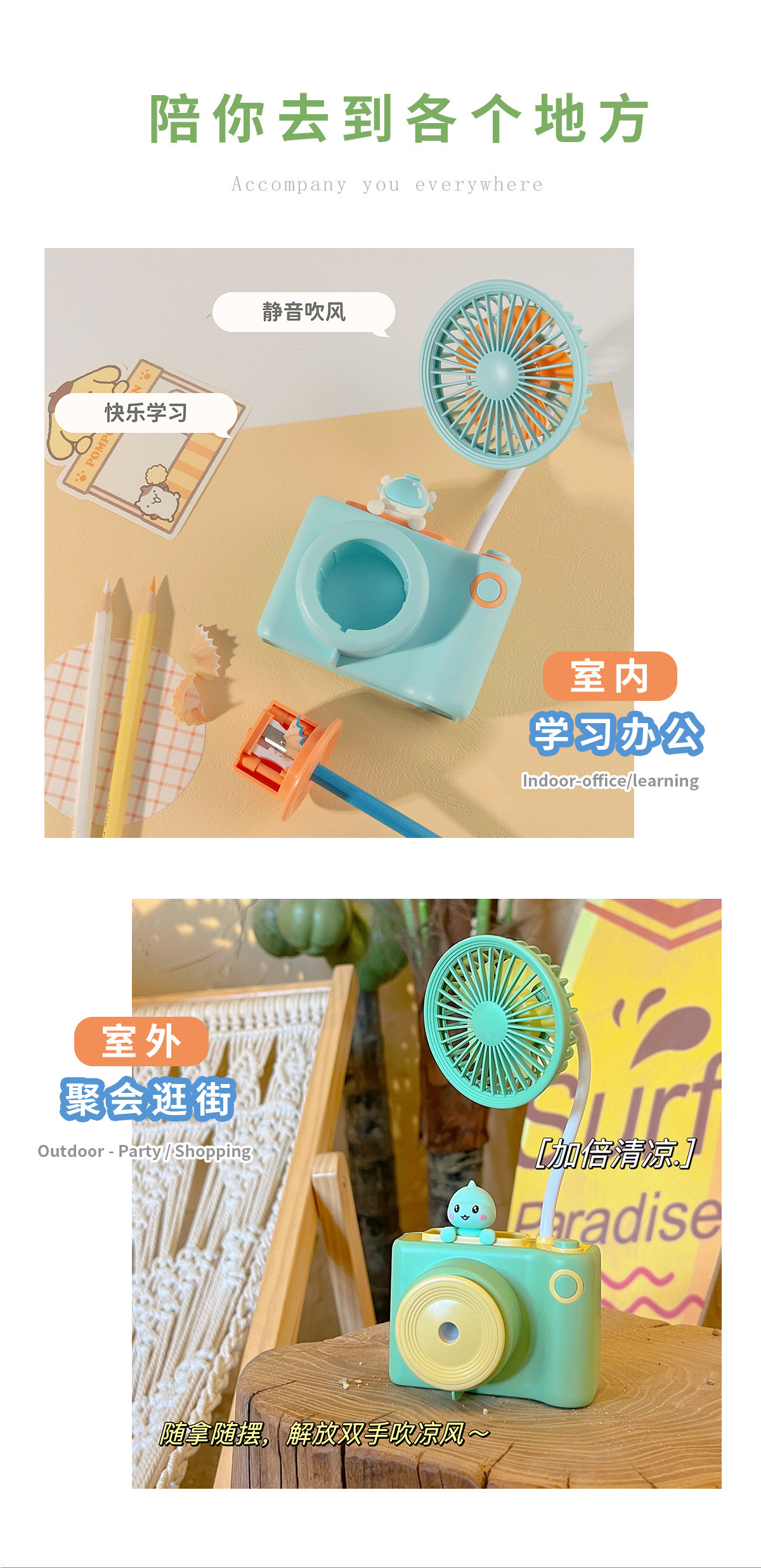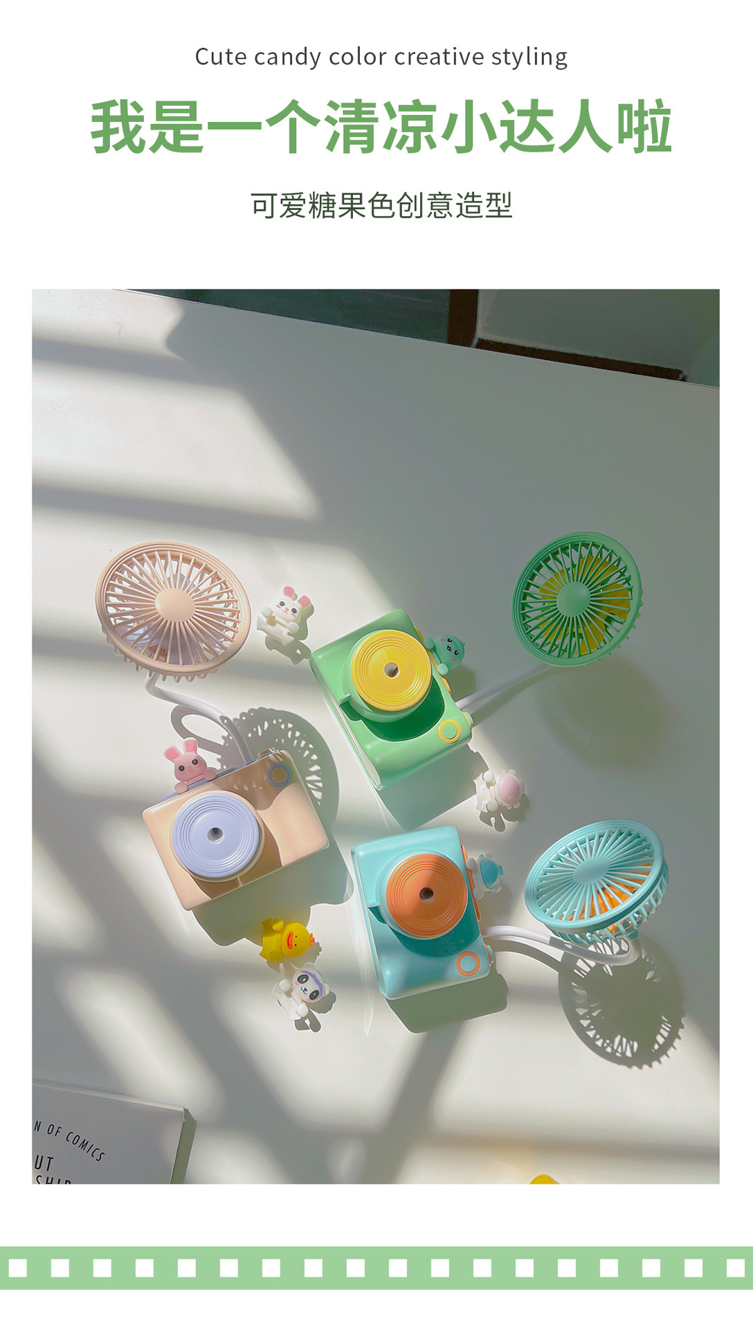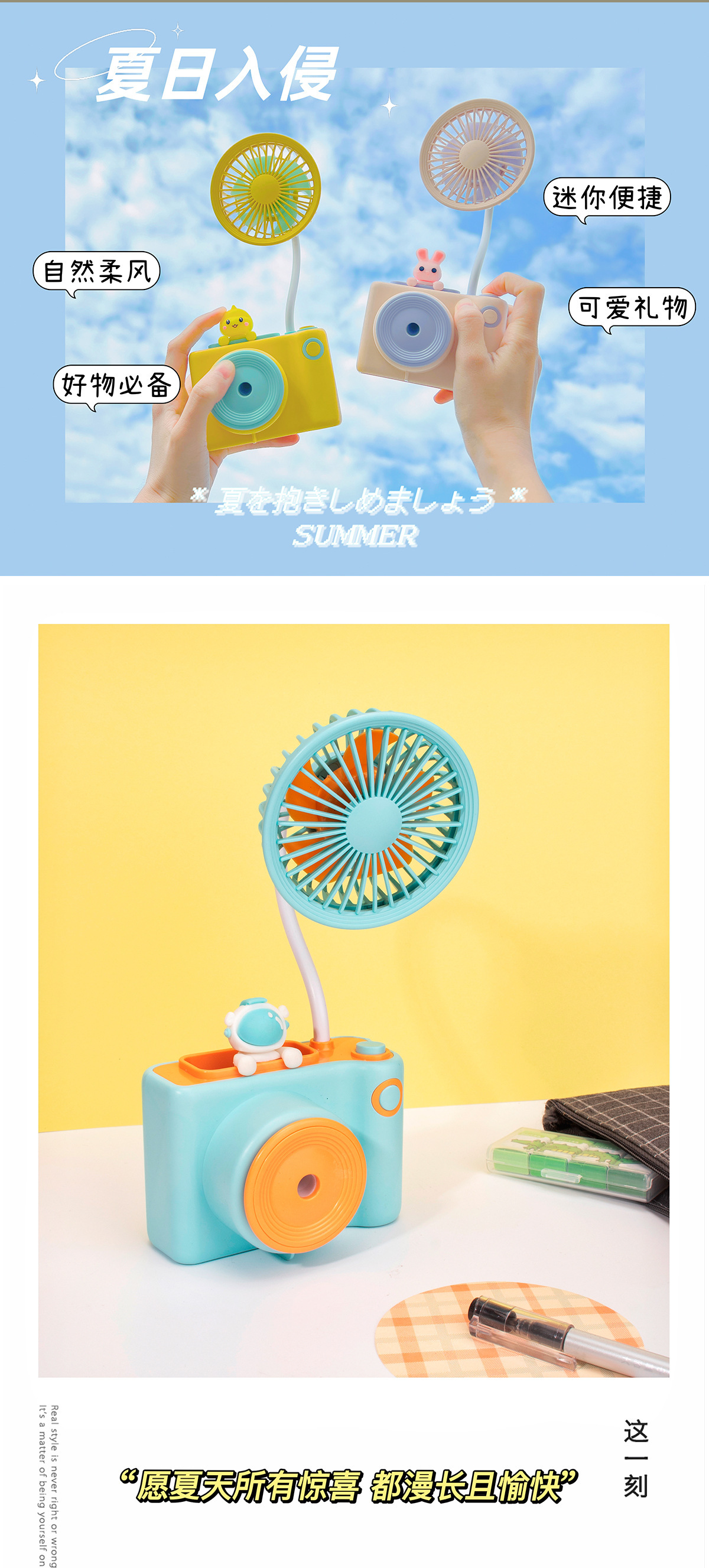 新款相机造型百变软管风扇 USB充电铅笔刨多功能桌面小风扇 礼品