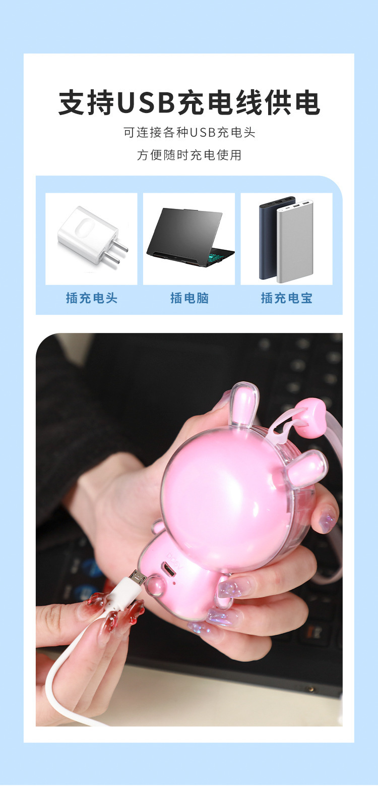 【产品名称】:卡通涡轮手持电风扇【包装方式】:彩盒【装箱数量】:144个【产品尺寸】:6.0*10.5*4.8cm【外箱规格】:61.5*41*52.5cm【毛/净重】:22/20KG【产品功率】:0.6-3W【产品电压】:DC5V/USB