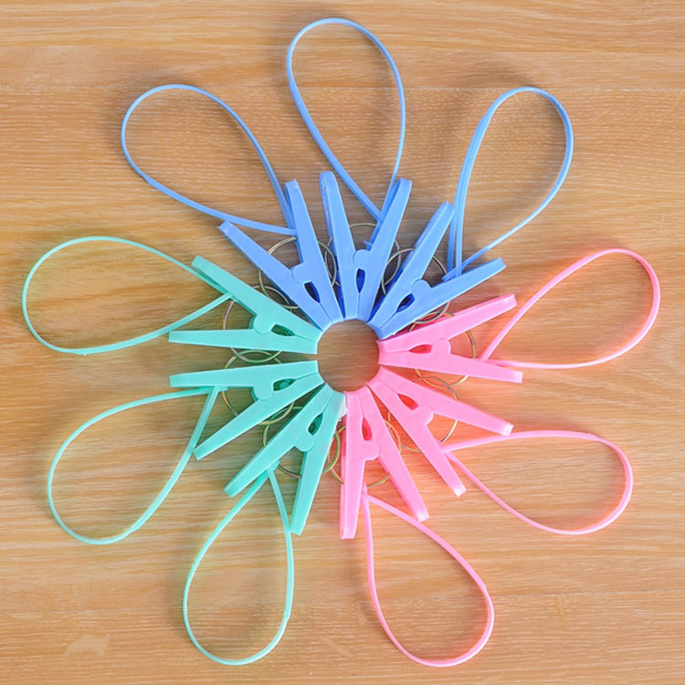 12只装塑料袜子内衣晾衣夹防风夹子晒衣服夹子晾晒夹子锁带绳衣夹
