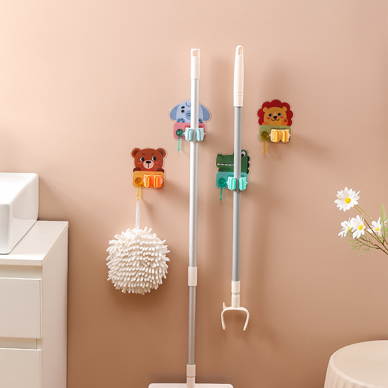 家用卡通拖把架扫把卡座拖把挂钩强力无痕免打孔拖把夹浴室粘钩