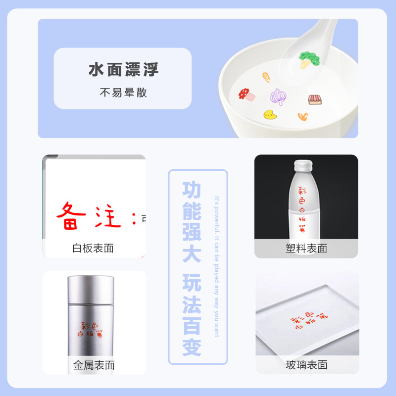 创意儿童水中漂浮笔画画悬浮笔水彩笔可擦彩色白板笔批发8色12色