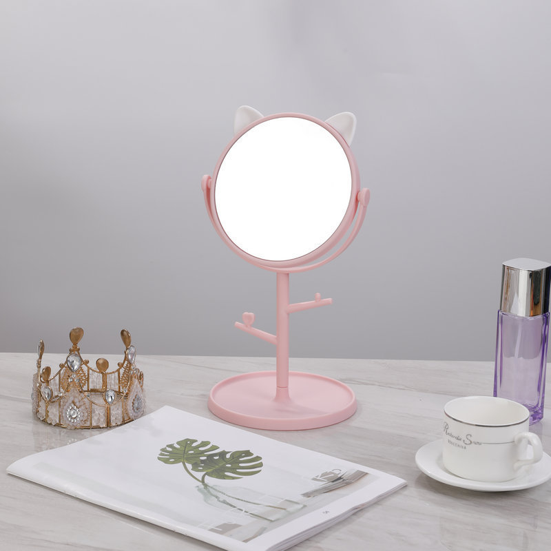 猫耳朵台式化妆镜高清少女可立公主镜学生宿舍桌面梳妆镜可爱镜子