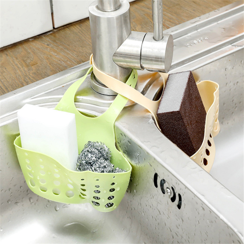 创意可调节按扣式厨房置物架 水龙头海绵沥水挂袋 海绵沥水收纳架