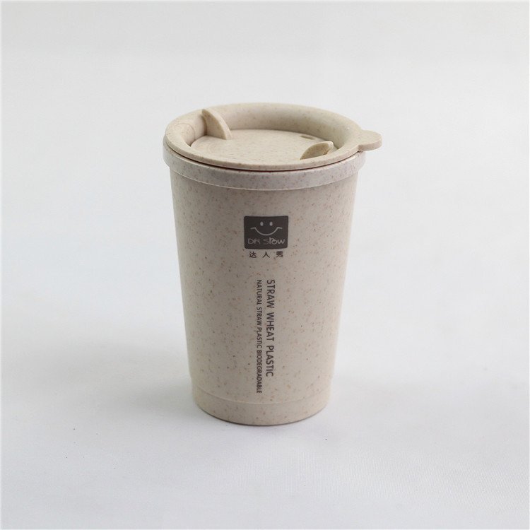 小麦秸秆旋转杯盖带透气孔水杯 双层保温隔热环保随手杯咖啡杯 投诉